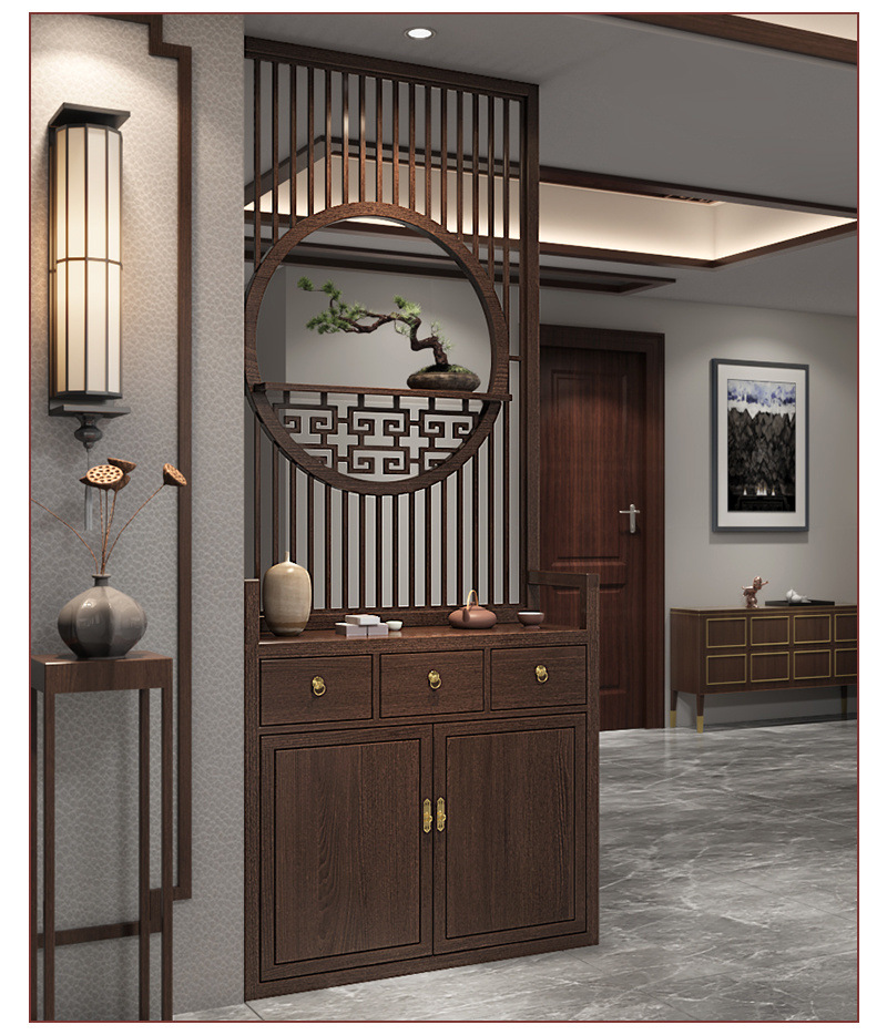 새로운 중국식 스크린 캐비닛 거실 파티션 입구 복도 대피소 오른쪽 끝 문이있는 간단한 현대 단단한 나무 신발 캐비닛