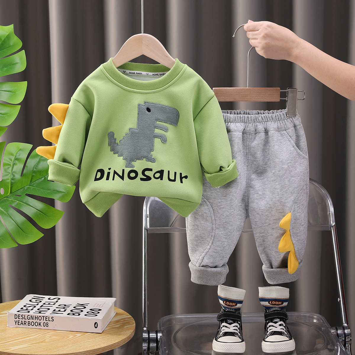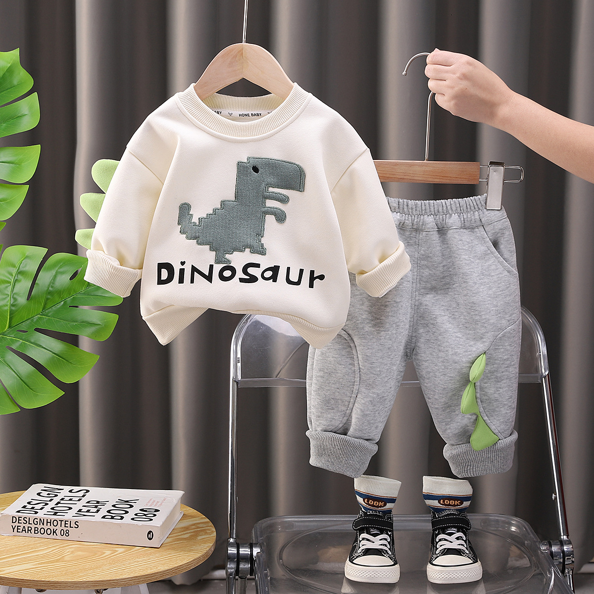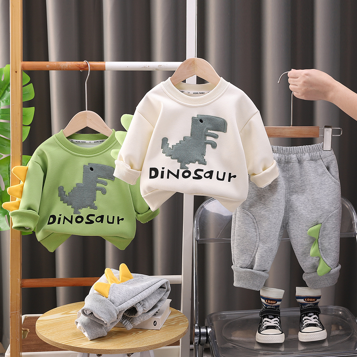 2025 년 새로운 아동복 소년 캐주얼 스포츠 세트 봄과 가을 트렌드 잘 생긴 공룡 투피스 옷 외국 스타일