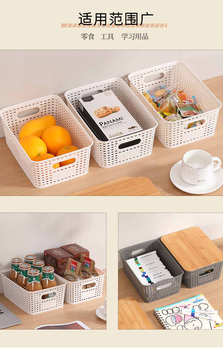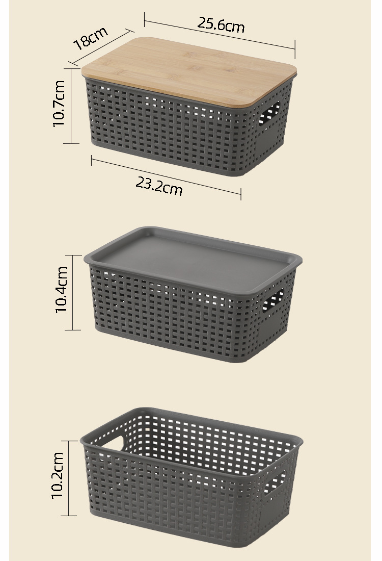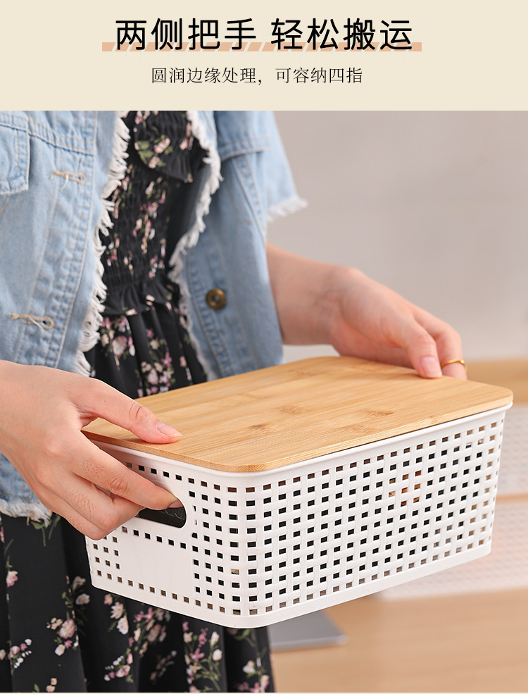 플라스틱 중공 짠 저장 바구니 장난감 책 탁상용 격자 대나무 뚜껑 쌓을 수있는 저장 바구니 도매
