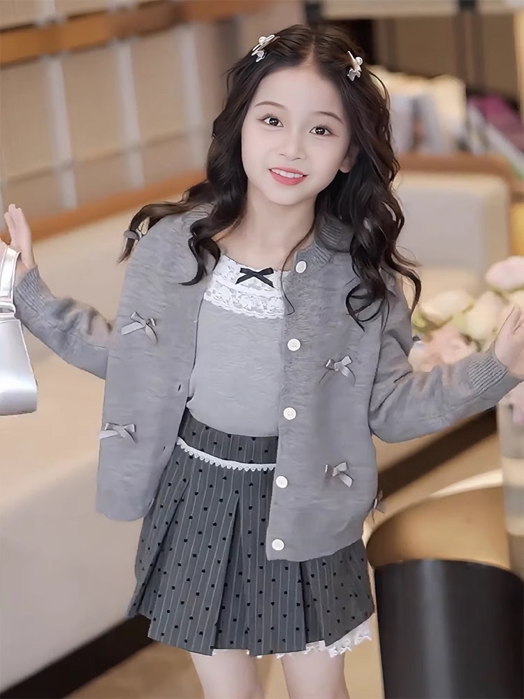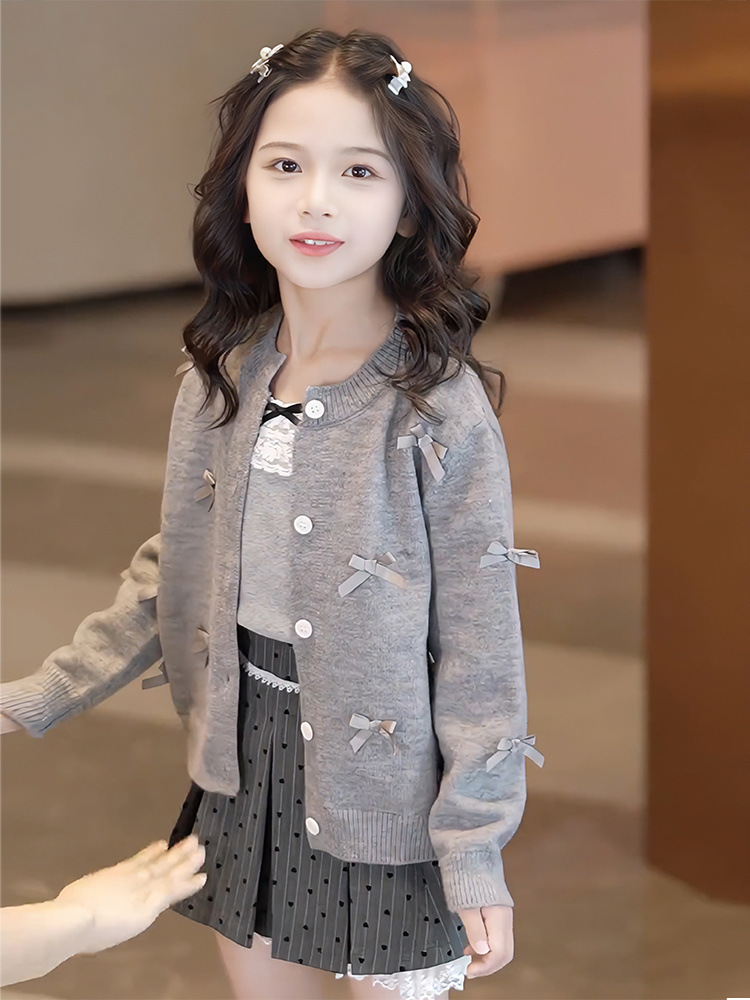 소녀 코트 2024 년 봄과 가을 새로운 스타일 서양식 이른 가을 카디건 어린이 가을 니트웨어 여성 빅 아동복 가을 착용스토어 가기