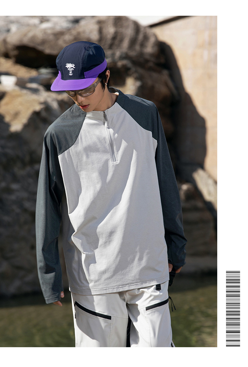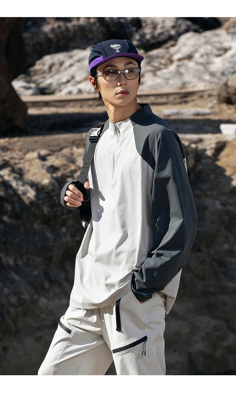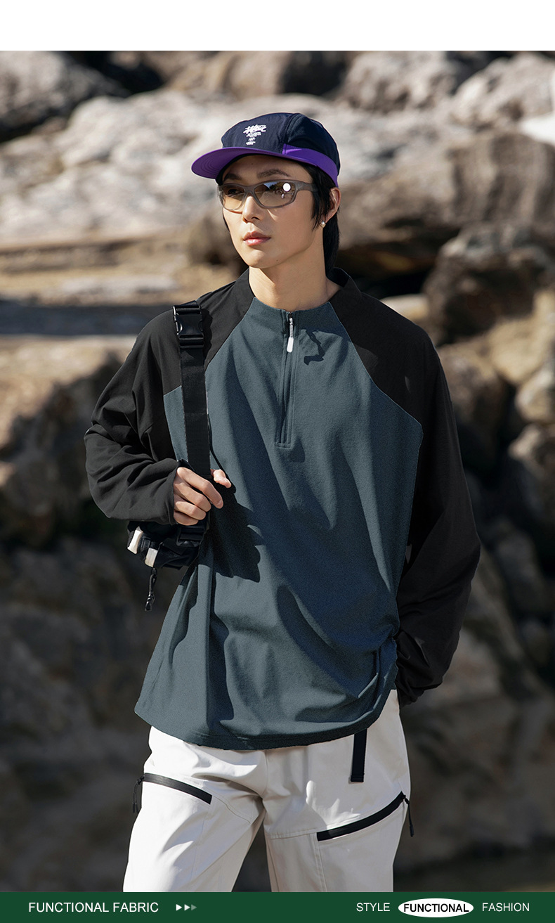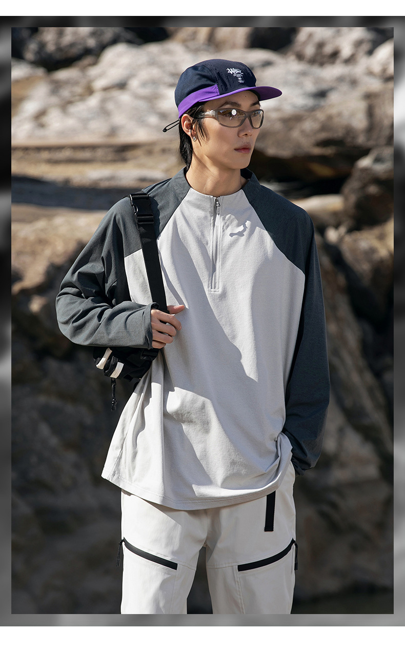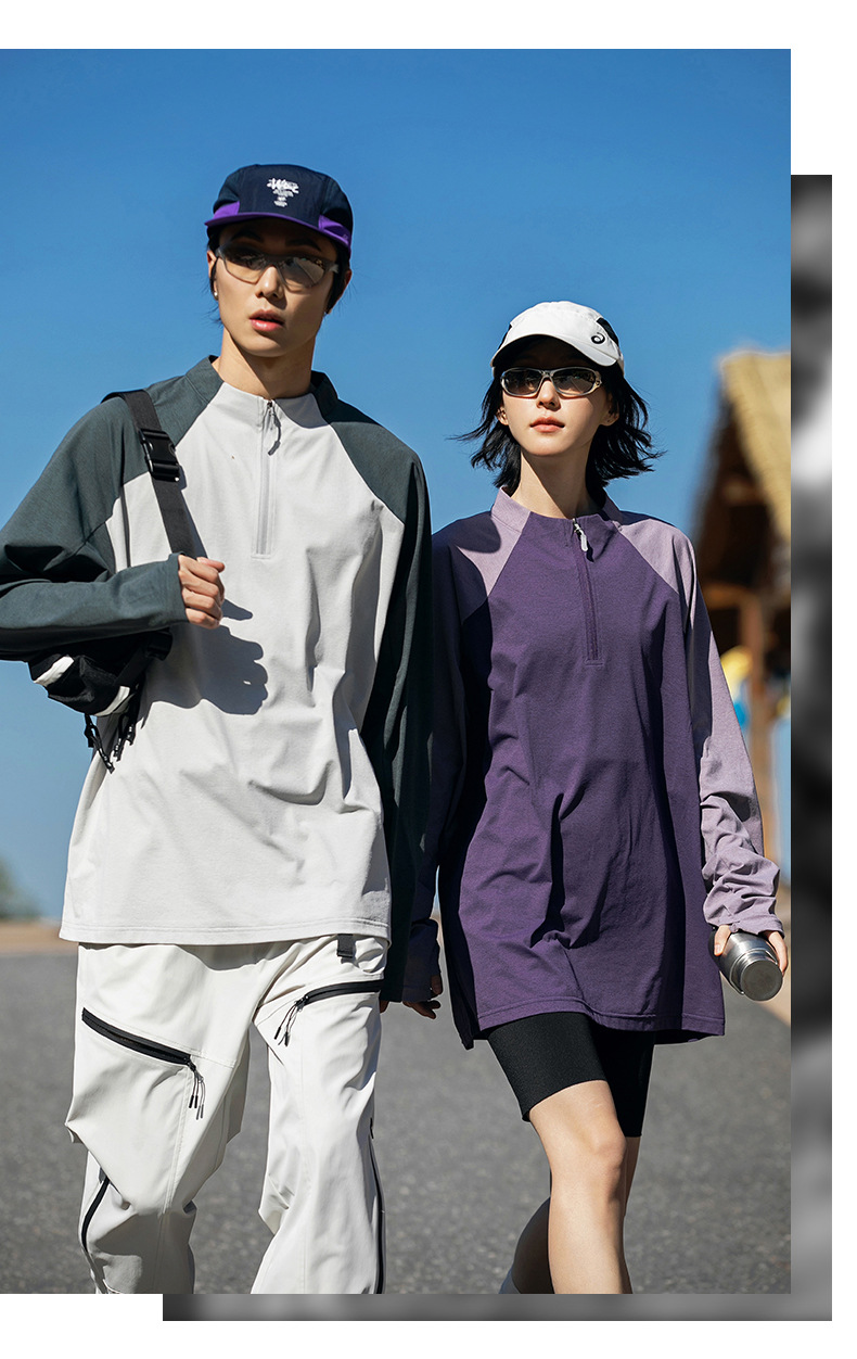 IZEXX 트렌디 아웃도어 스포츠 자외선 차단 속건 긴팔 티셔츠 남성 하프 지퍼 배색 커플룩 루즈핏 상의