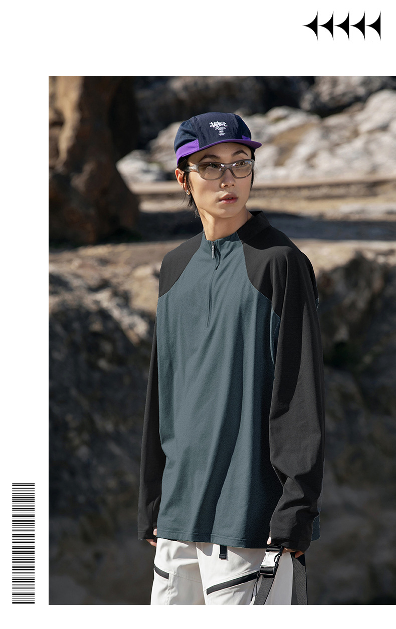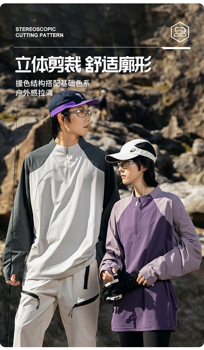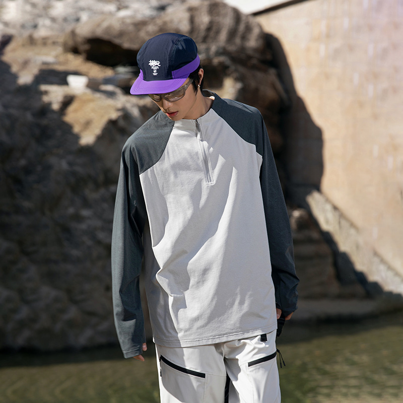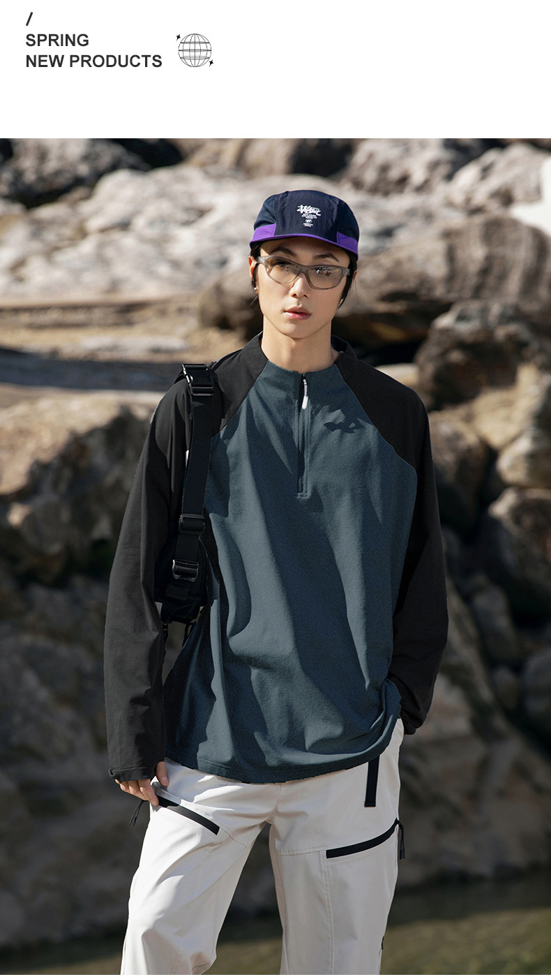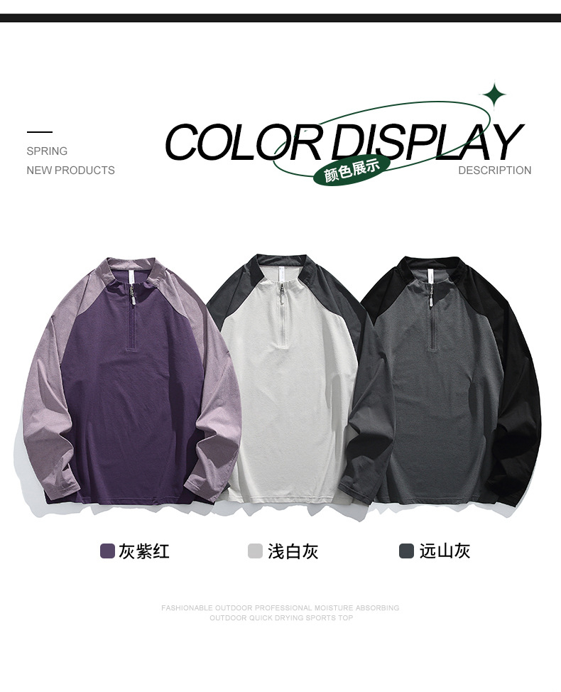 IZEXX 트렌디 아웃도어 스포츠 자외선 차단 속건 긴팔 티셔츠 남성 하프 지퍼 배색 커플룩 루즈핏 상의