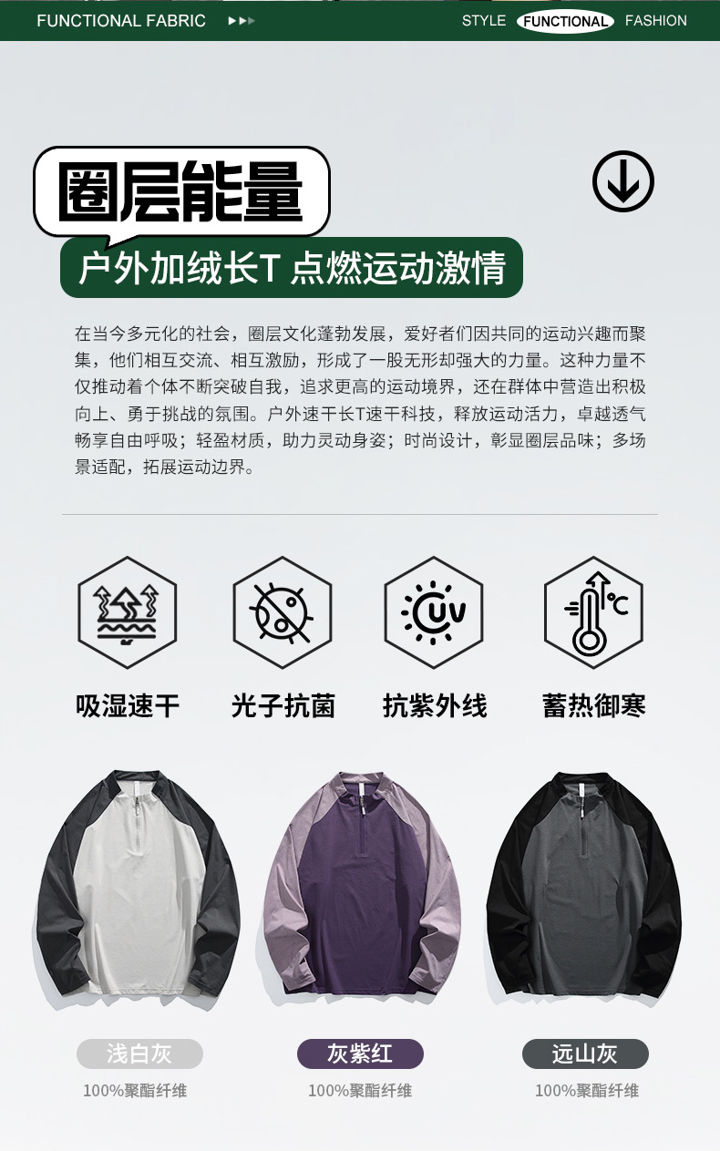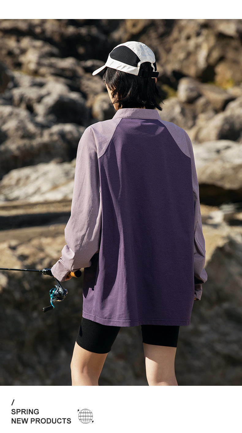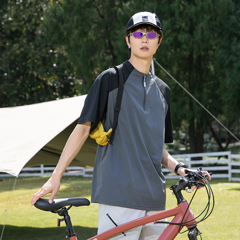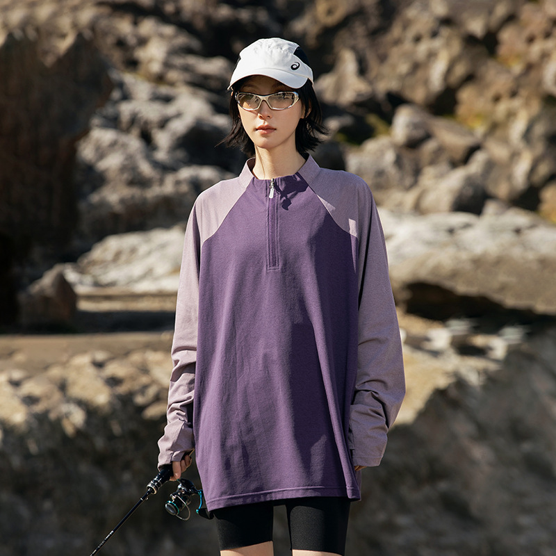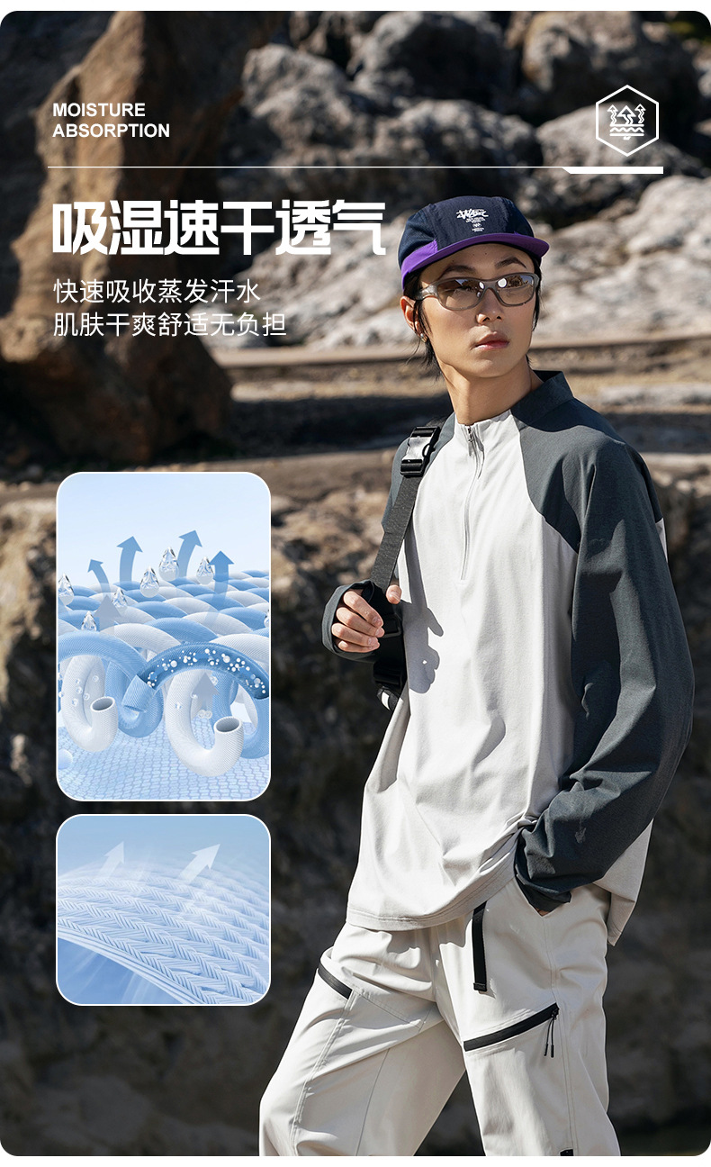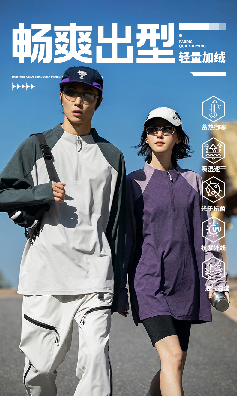 IZEXX 트렌디 아웃도어 스포츠 자외선 차단 속건 긴팔 티셔츠 남성 하프 지퍼 배색 커플룩 루즈핏 상의
