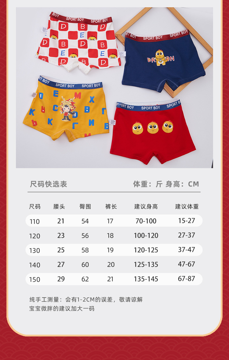 도매 아이들의 빗질면 속옷 소년 큰 빨간 복서 아기 작은 소년 항균 매체 및 큰 어린이 반바지스토어 가기