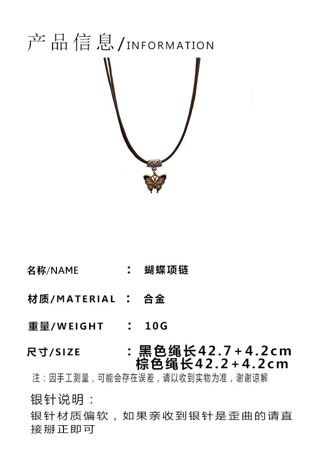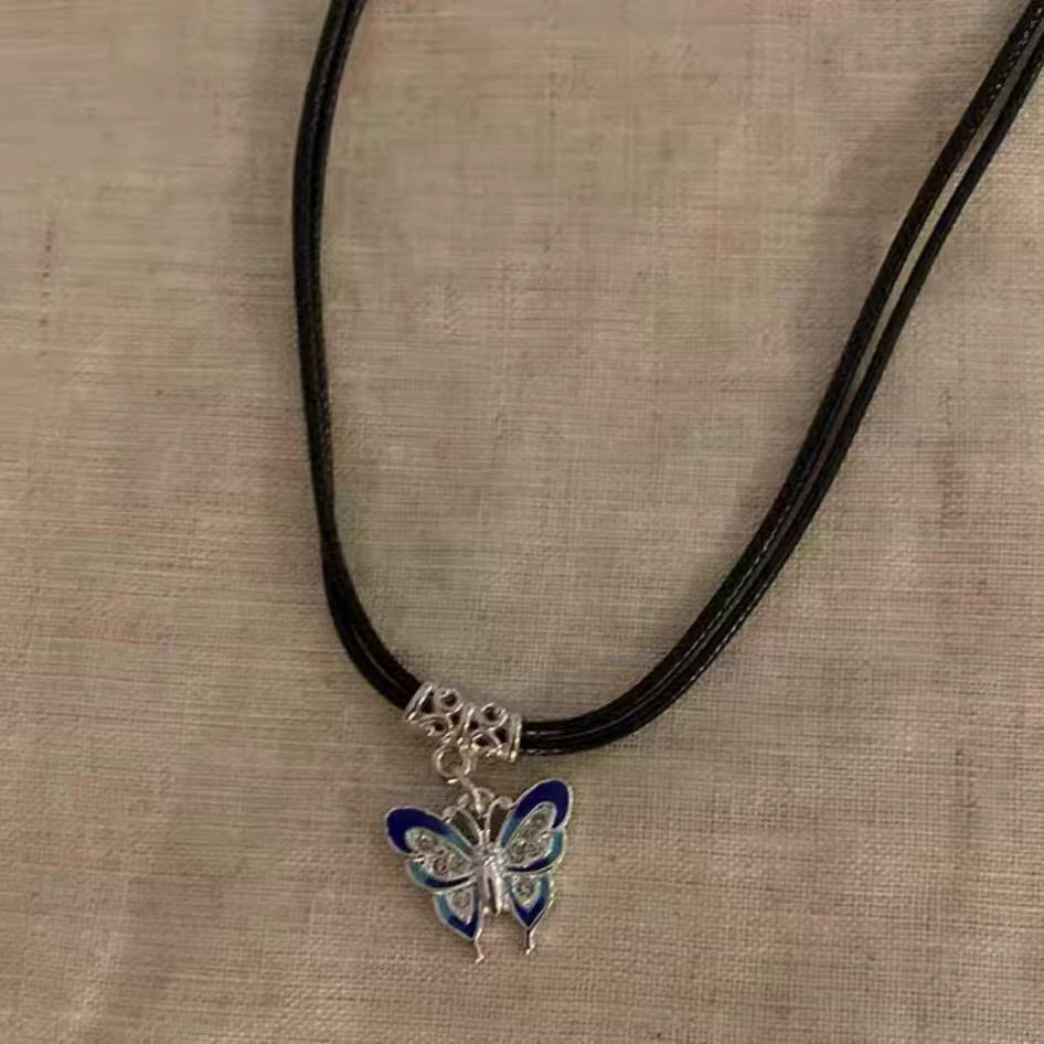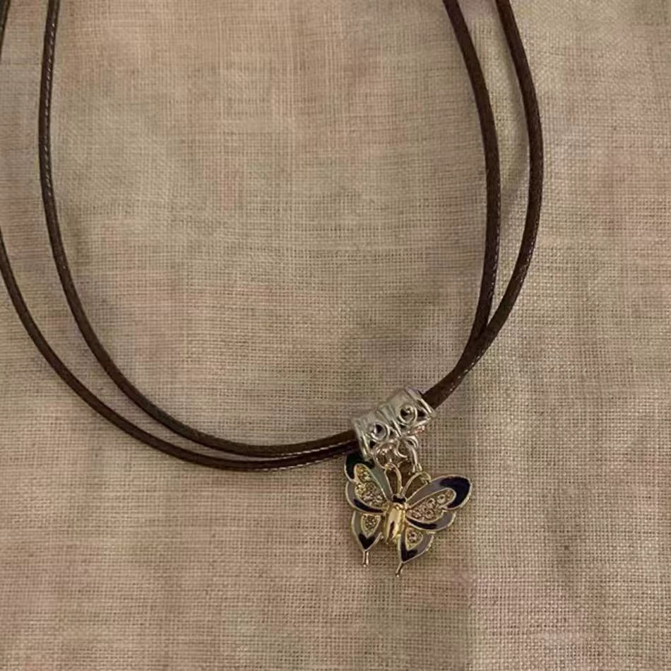 새로운 중국 선 나비 펜던트 목걸이 여성 민족 스타일 레트로 가죽 로프 목걸이 틈새 디자인 모든 매치 모직 체인스토어 가기