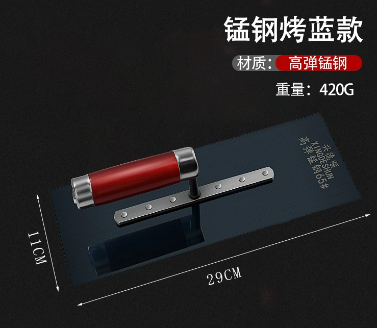 • 바닥에 리벳이 있는 베이크드 블루 29cm 긴 진흙 흙손