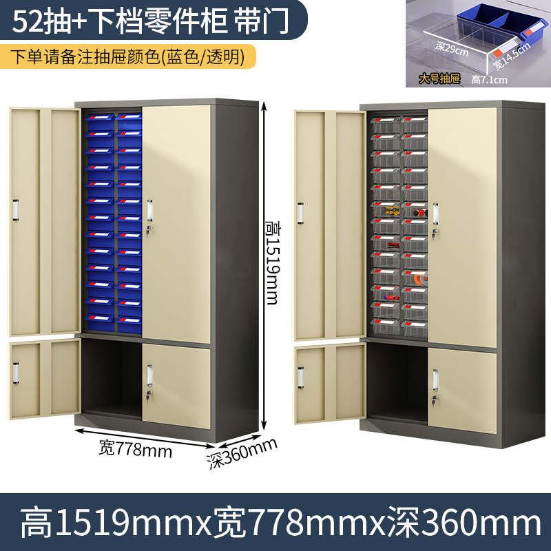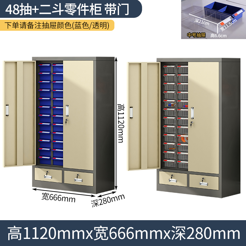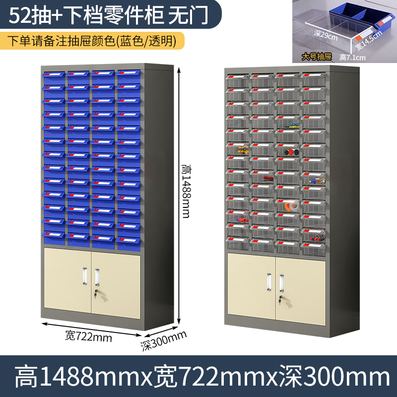 • 서랍 48개(파란색/투명) 문 없음 + 버킷 2개