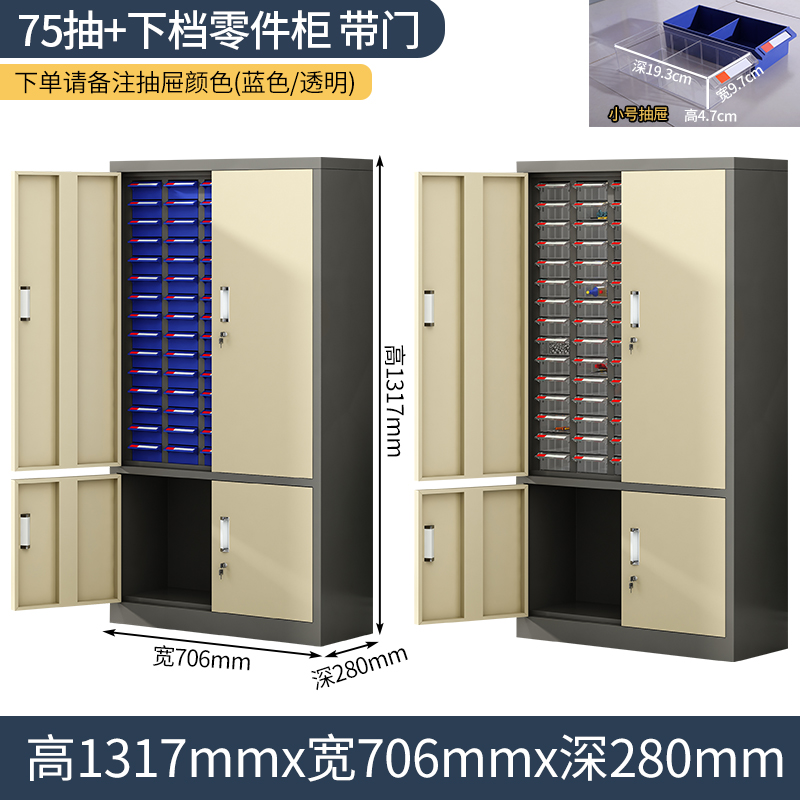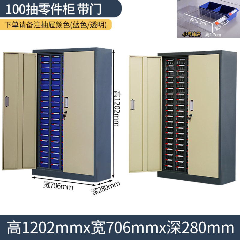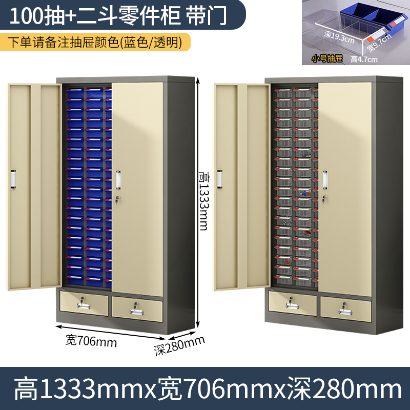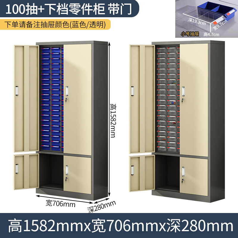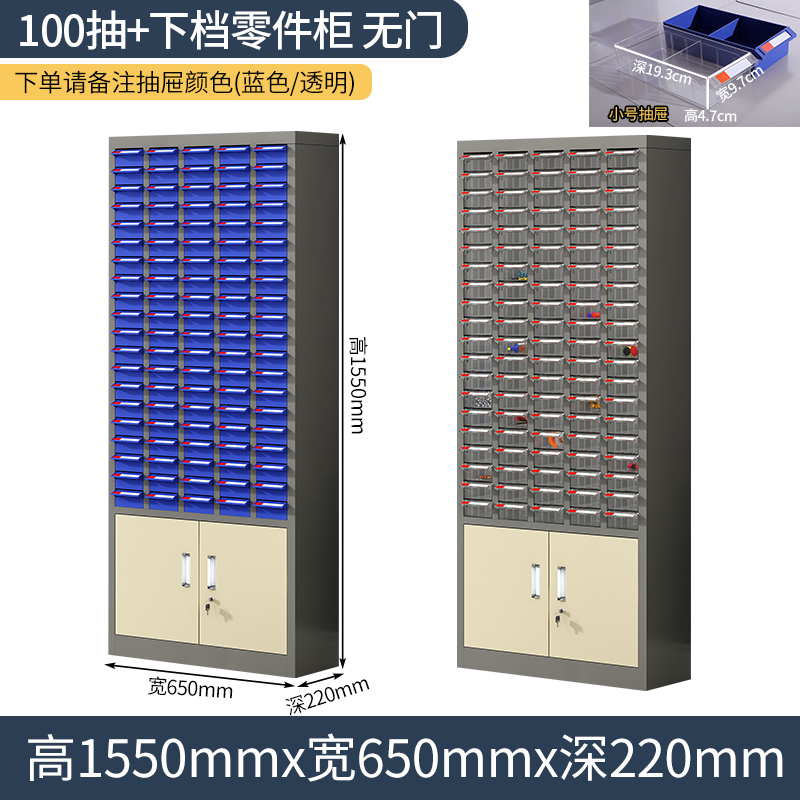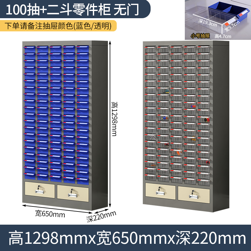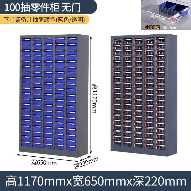 • 서랍 100개(파란색/투명), 문 포함 + 버킷 2개