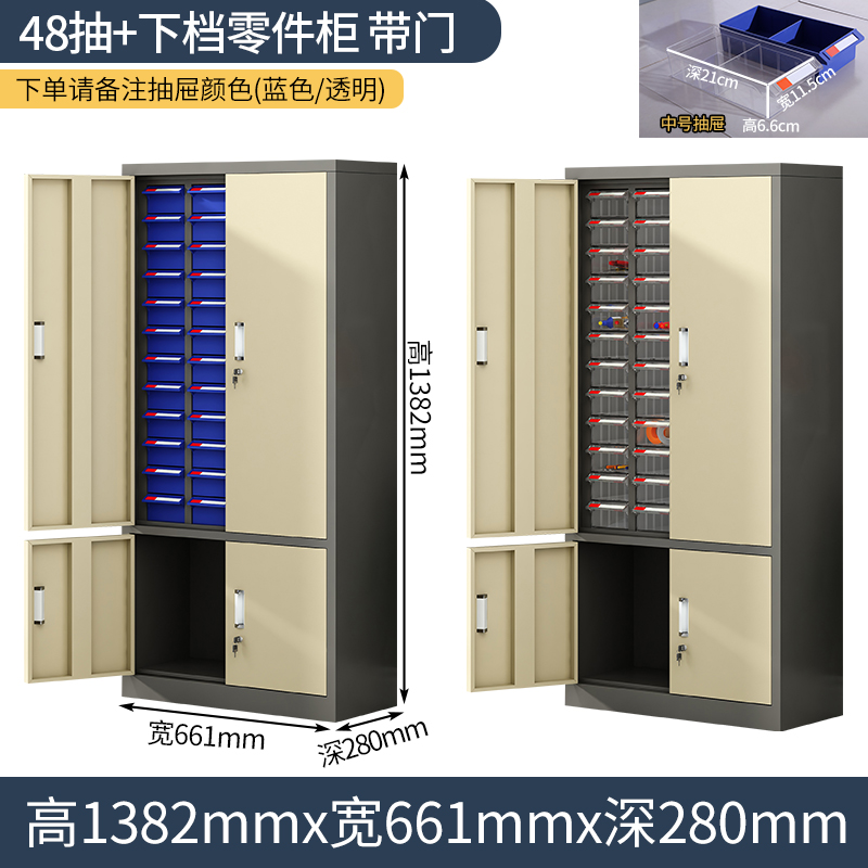 • 서랍 48개(파란색/투명) 문 포함 + 버킷 2개