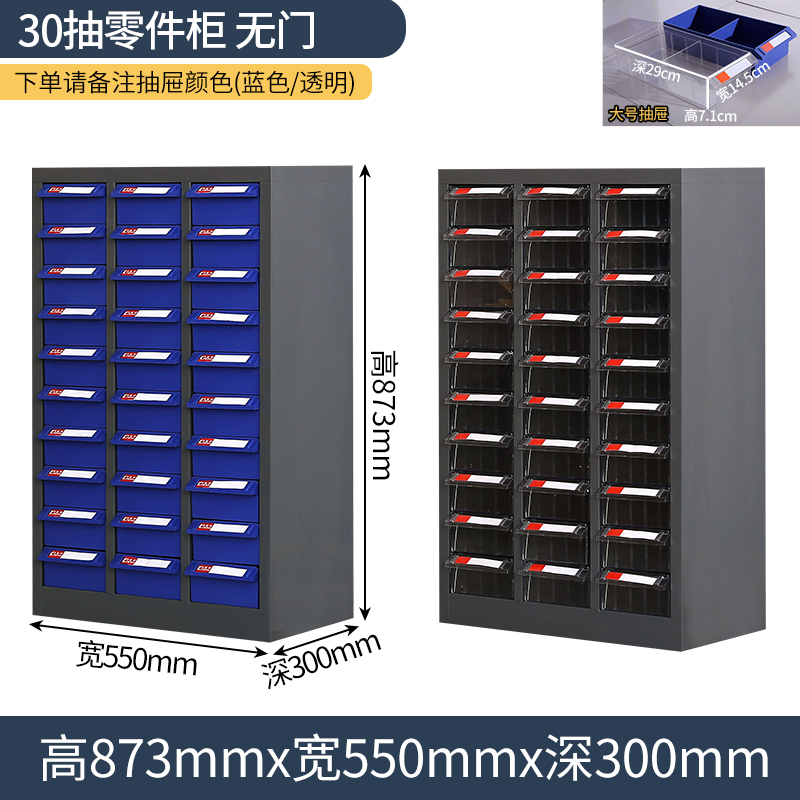 • 서랍 30개(파란색/투명) 문 없음 + 버킷 2개