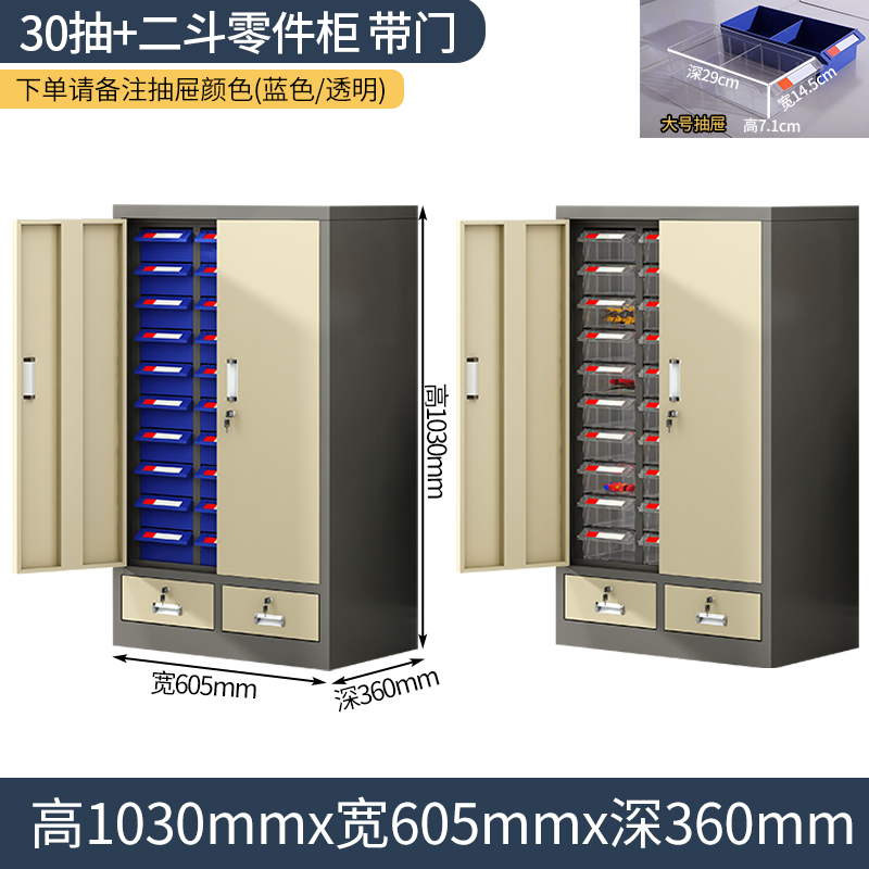 • 서랍 30개(파란색/투명), 문 포함 + 버킷 2개