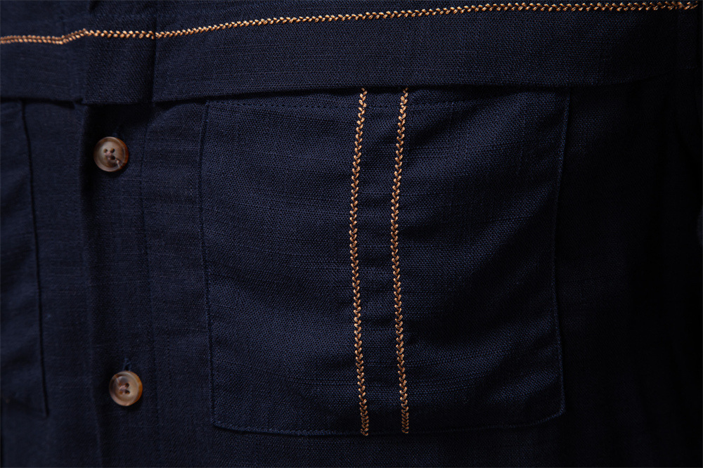 2025 봄과 여름 유럽과 미국의 국경 새로운 남성 캐주얼 셔츠 유럽 크기 단색 포켓 장식용 긴 소매 셔츠