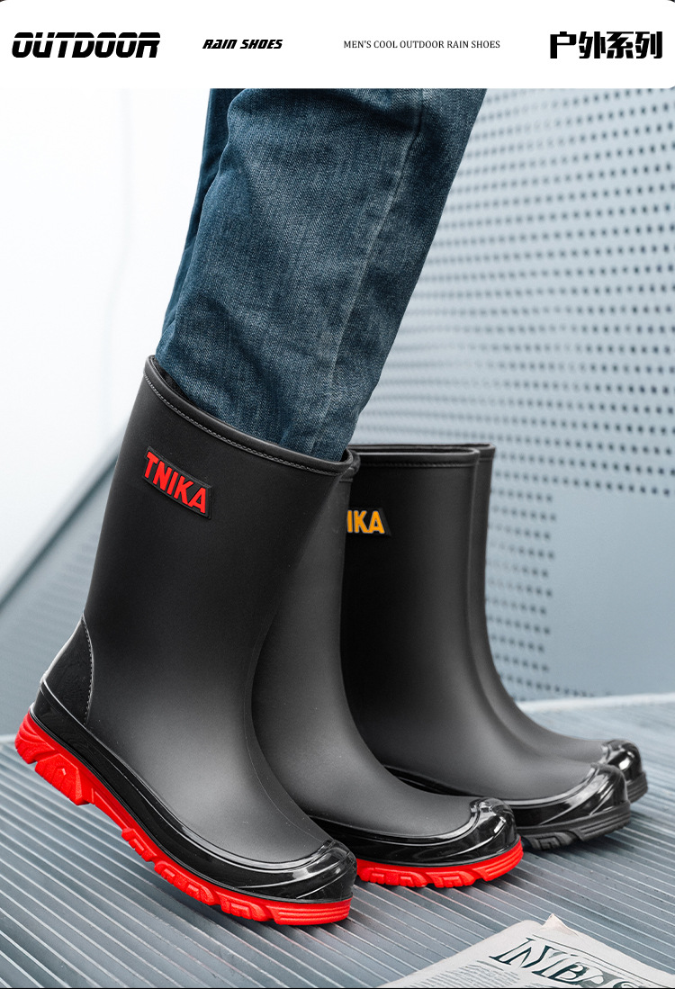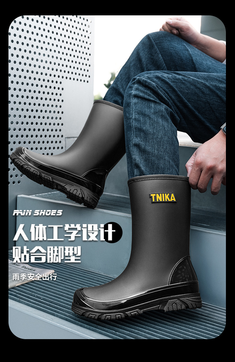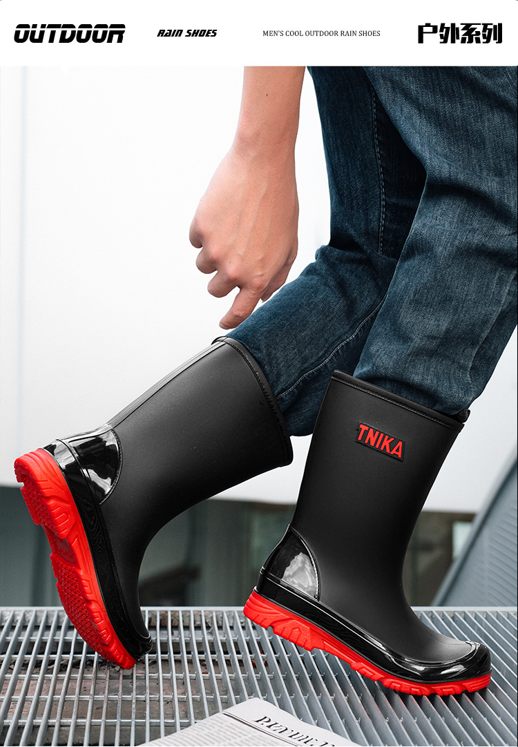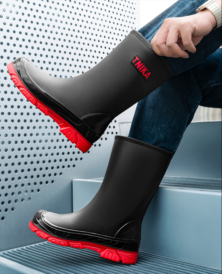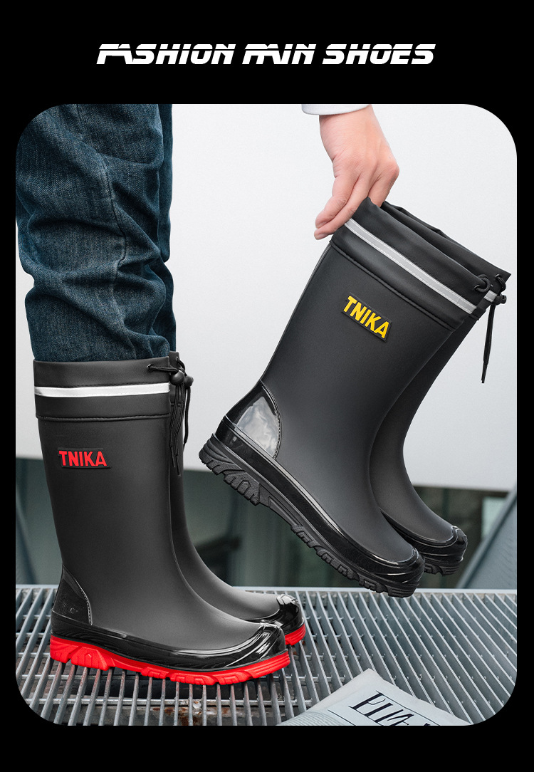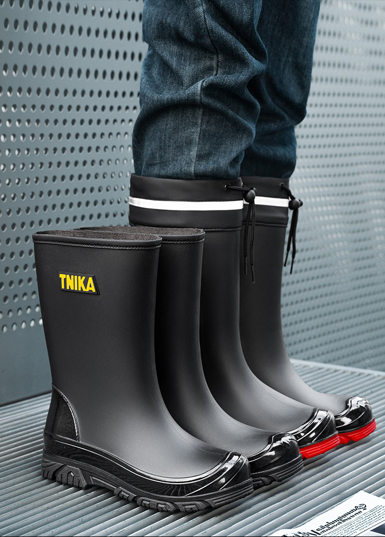영국 장화 남성 중간 배럴 장화 야간 반사 빔 방수 신발 미끄럼 방지 남성 장화 낚시 성인 고무 신발