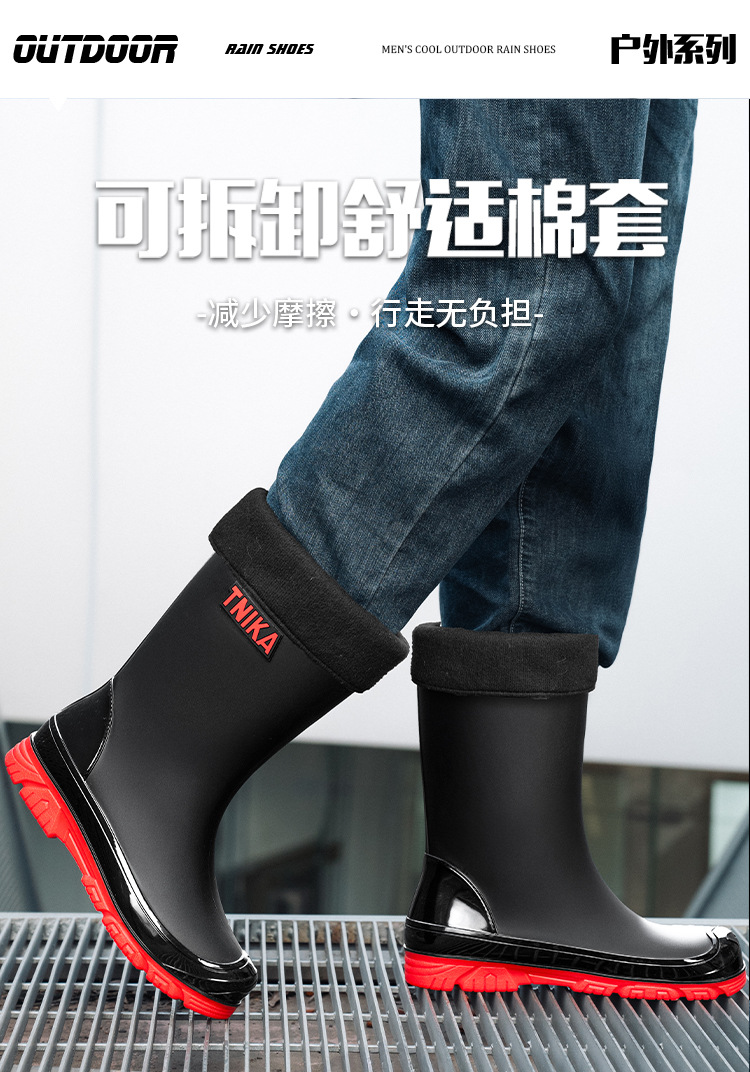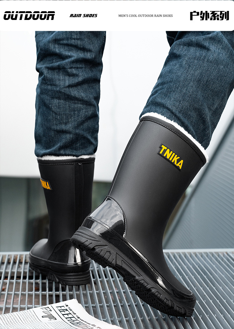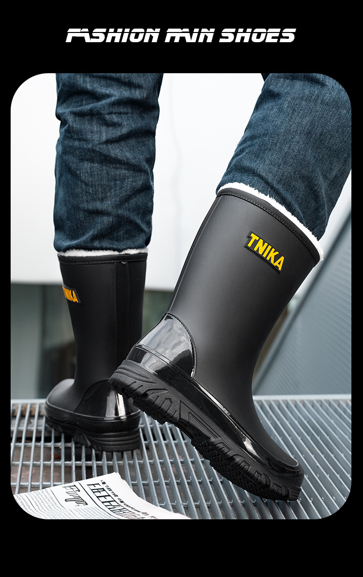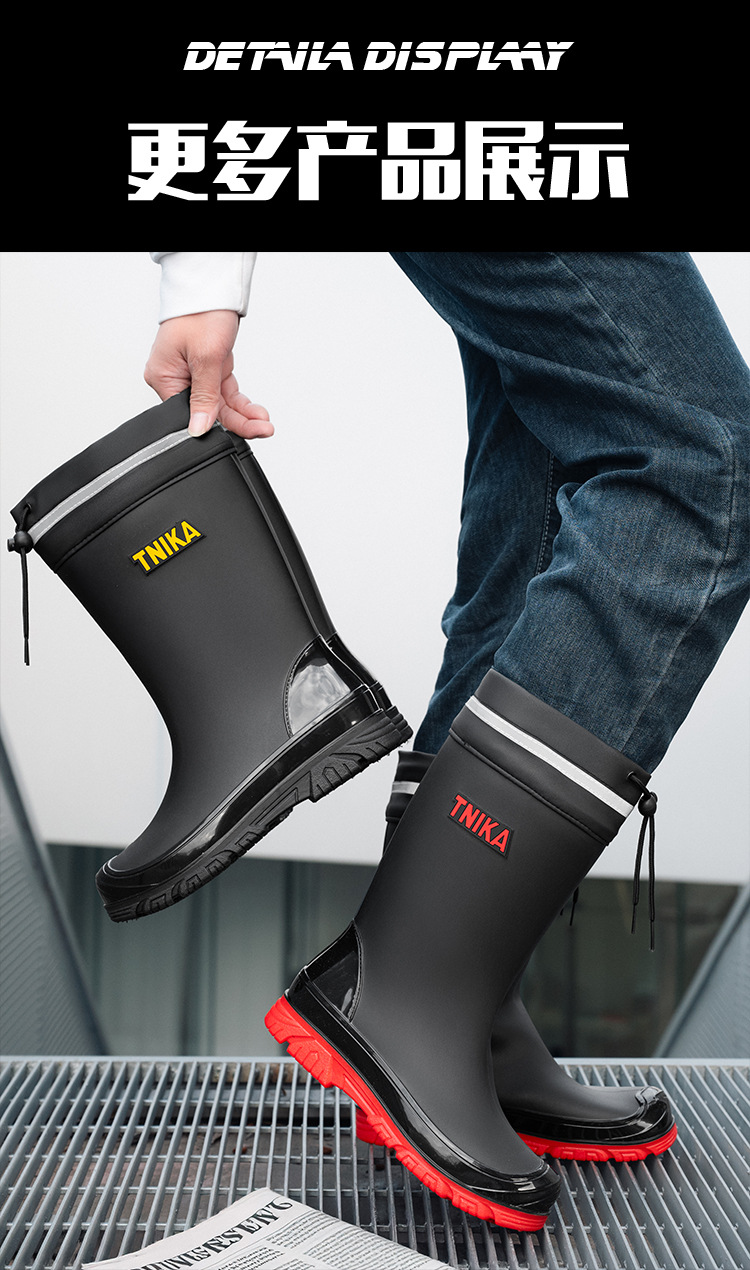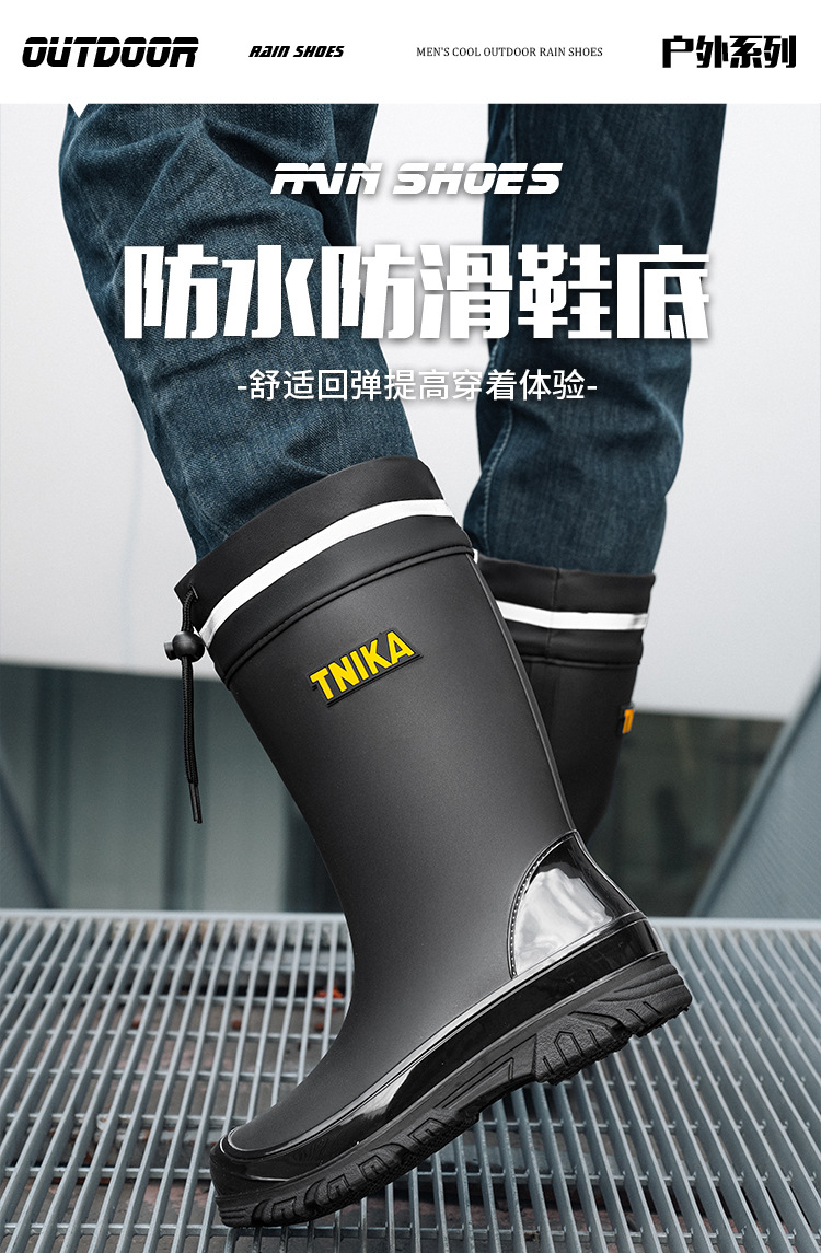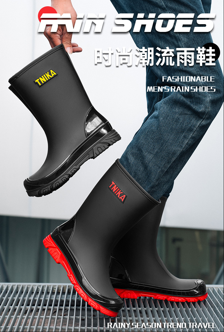 영국 장화 남성 중간 배럴 장화 야간 반사 빔 방수 신발 미끄럼 방지 남성 장화 낚시 성인 고무 신발