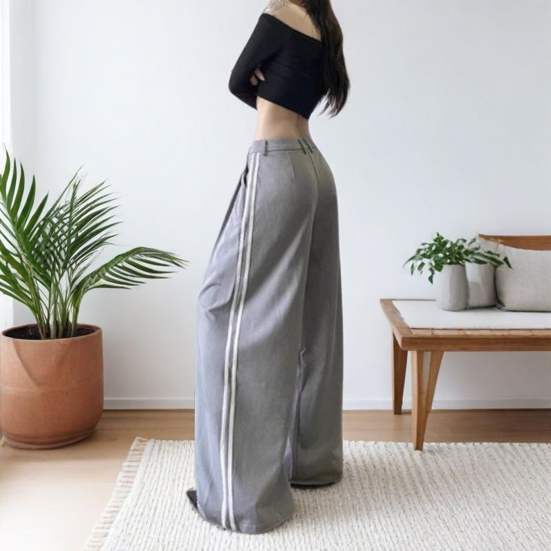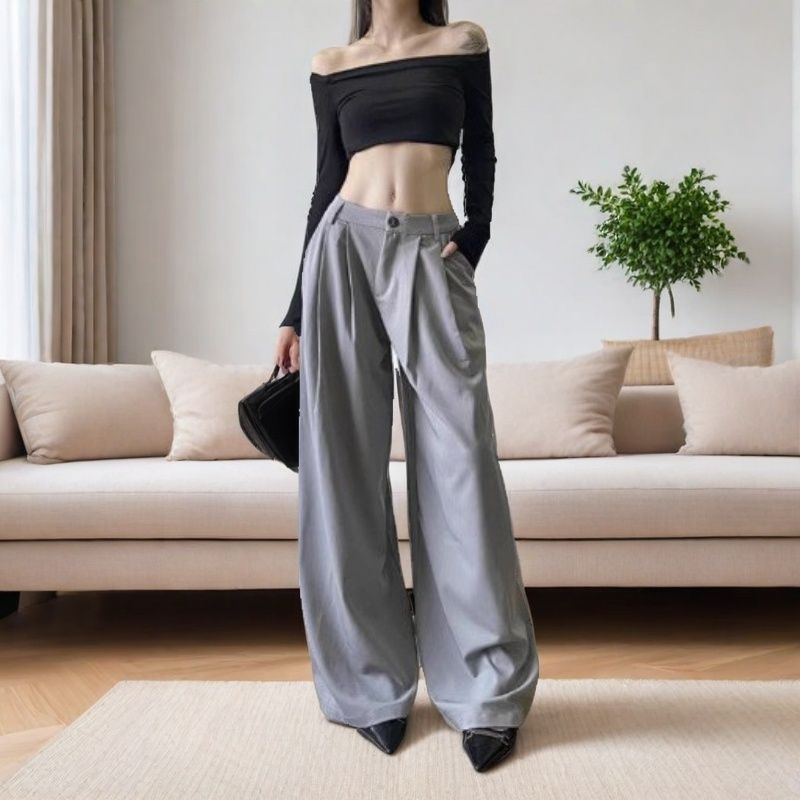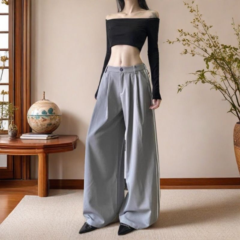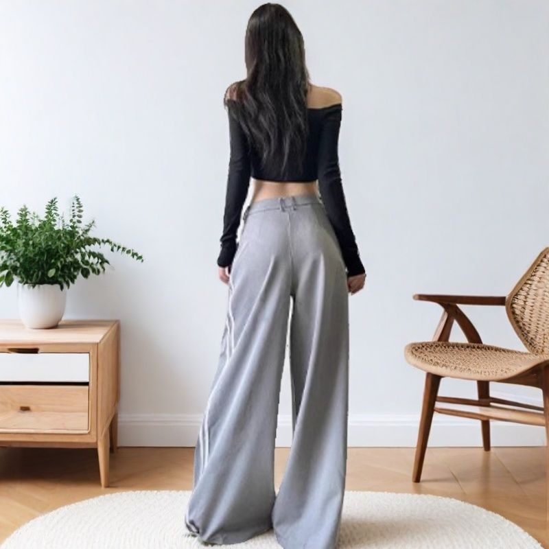봄 새로운 비 기모 얇은 천연 허리 긴 세트 넓은 다리 바지 느슨한 슬림 드레이프 바지스토어 가기