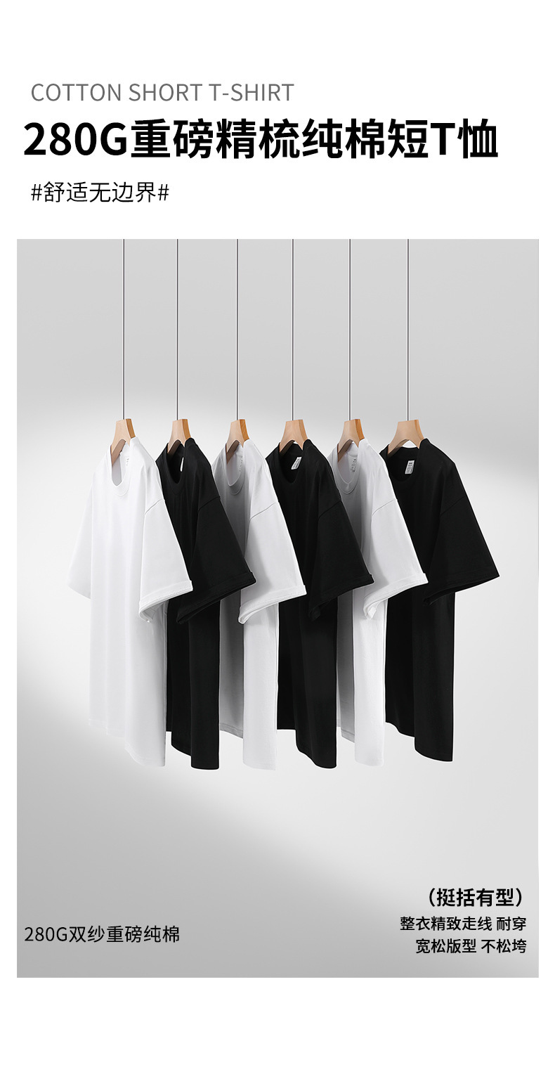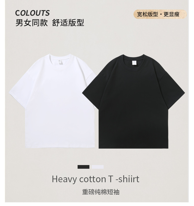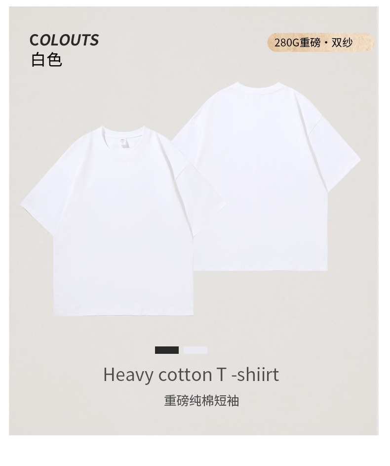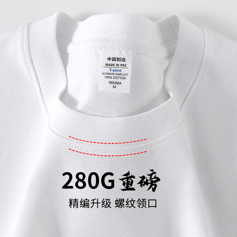 280G 헤비 코튼 32 더블 원사 짧은 소매 티셔츠 남자와 여자의 둥근 목 어깨 느슨한 백베이스 셔츠 패션 브랜드스토어 가기