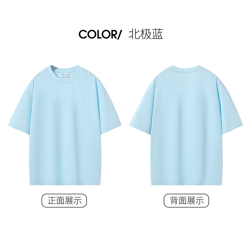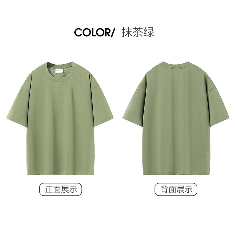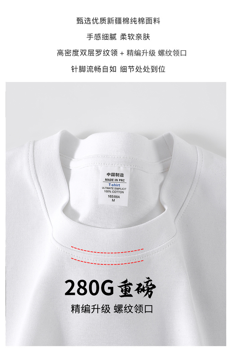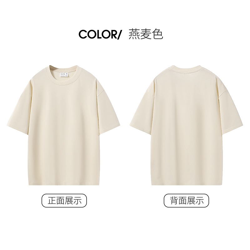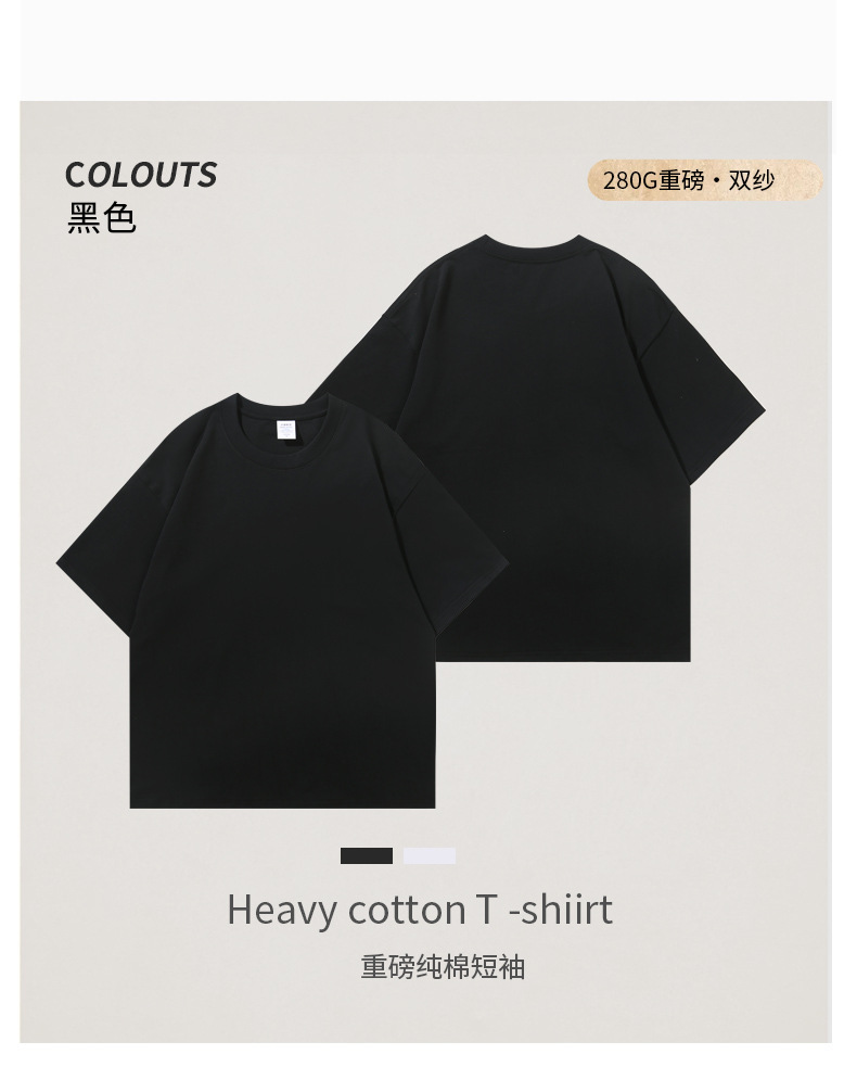 280G 헤비 코튼 32 더블 원사 짧은 소매 티셔츠 남자와 여자의 둥근 목 어깨 느슨한 백베이스 셔츠 패션 브랜드스토어 가기