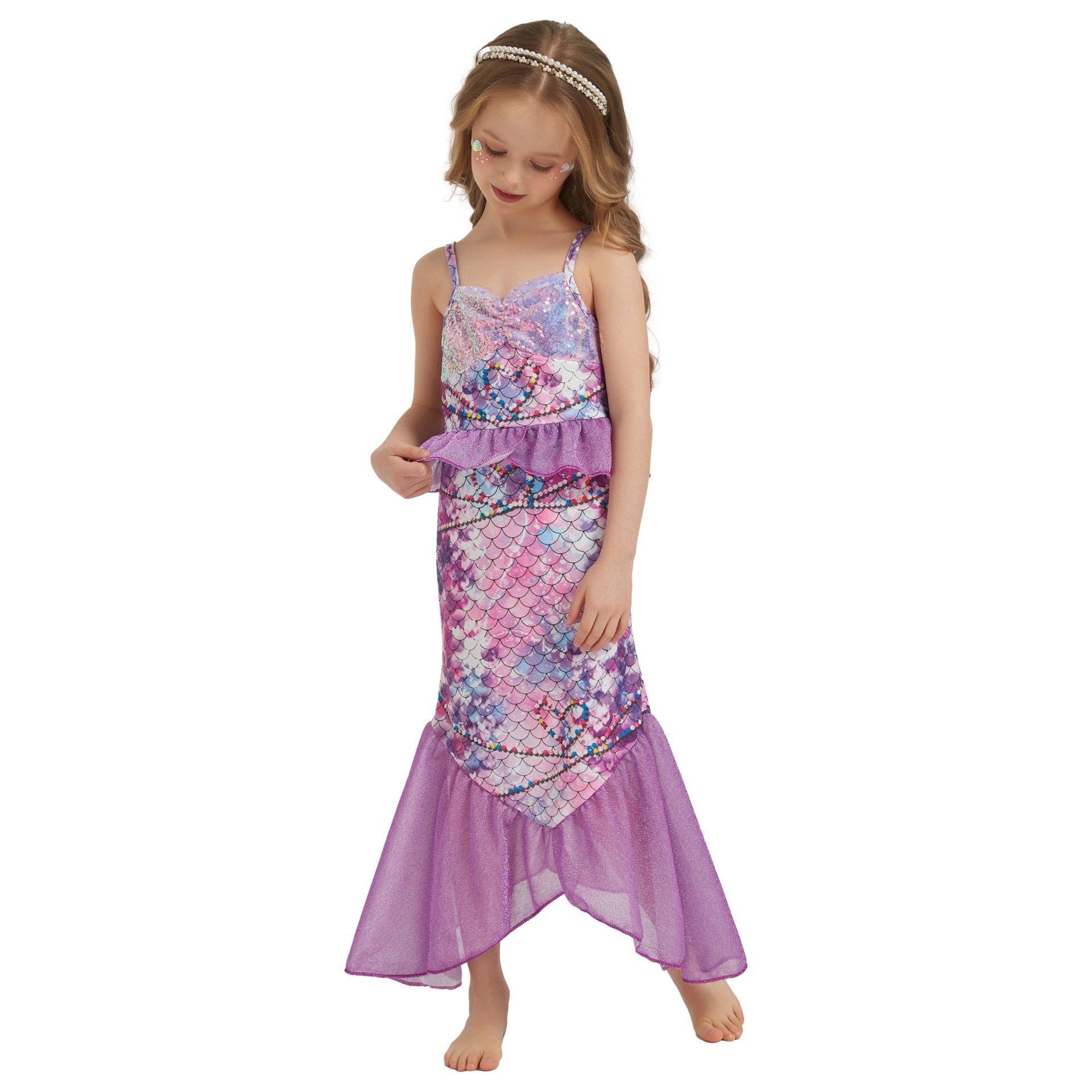 여자 할로윈 인어 드레스 어린이 스타일 스팽글 민소매 공주 드레스 피쉬 테일 롱 드레스 베이비 퍼포먼스