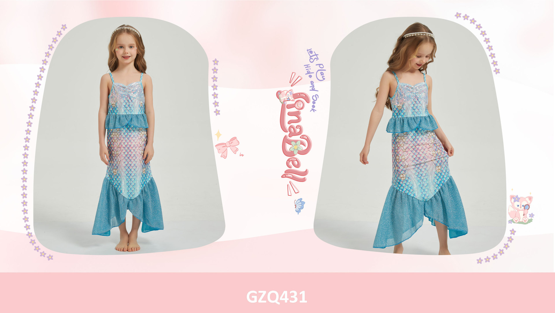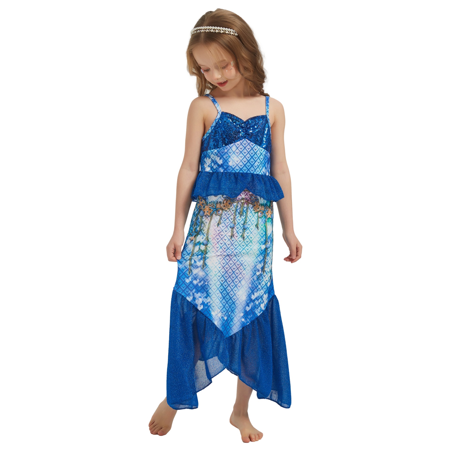여자 할로윈 인어 드레스 어린이 스타일 스팽글 민소매 공주 드레스 피쉬 테일 롱 드레스 베이비 퍼포먼스스토어 가기