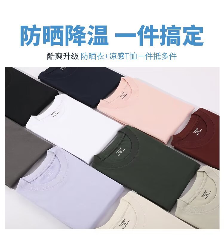 솔로 나 헤비 260G 쿨 티셔츠 남자의 UPF50 선 스크린 여름 아이스 실크 7A 항균 솔리드 컬러 느슨한 짧은 소매