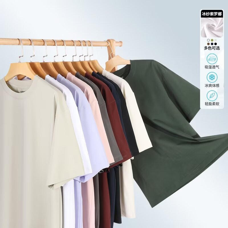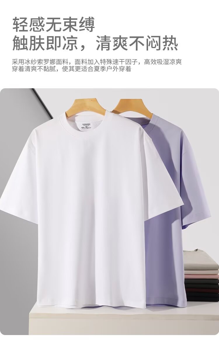 솔로 나 헤비 260G 쿨 티셔츠 남자의 UPF50 선 스크린 여름 아이스 실크 7A 항균 솔리드 컬러 느슨한 짧은 소매스토어 가기