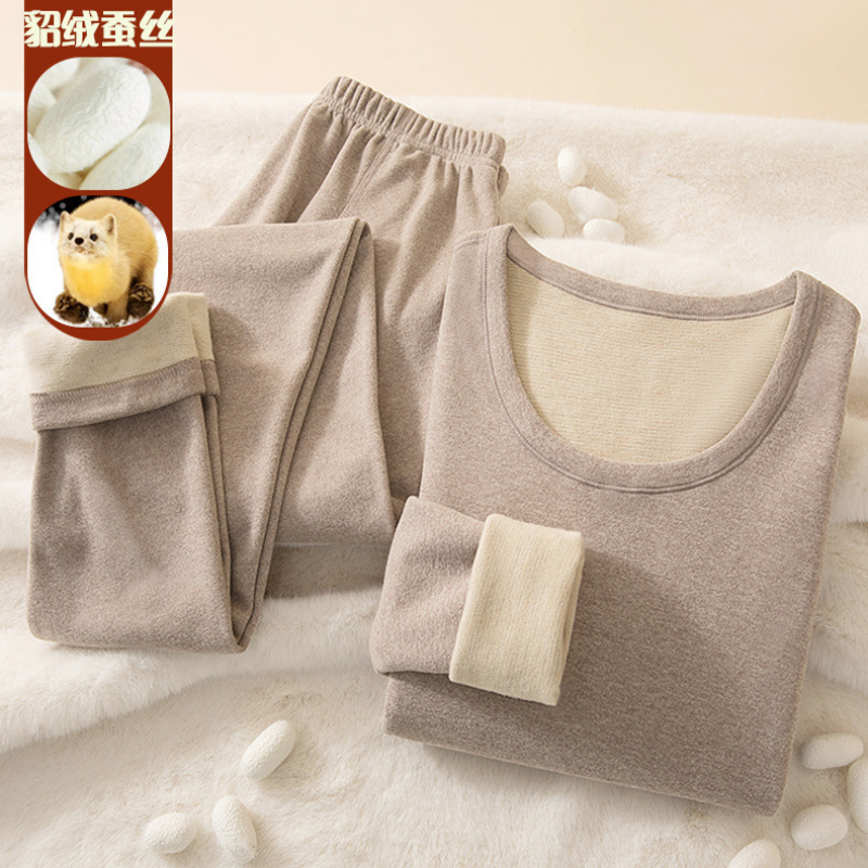 밍크 벨벳 캐시미어 뽕나무 실크 가열 열 속옷 세트 남성과 여성 연인 가을 의류 가을 바지 가을과 겨울