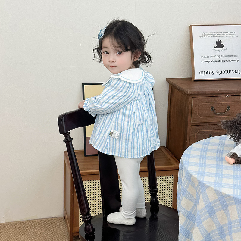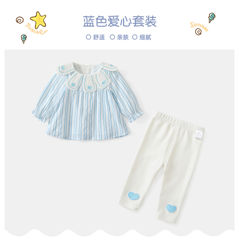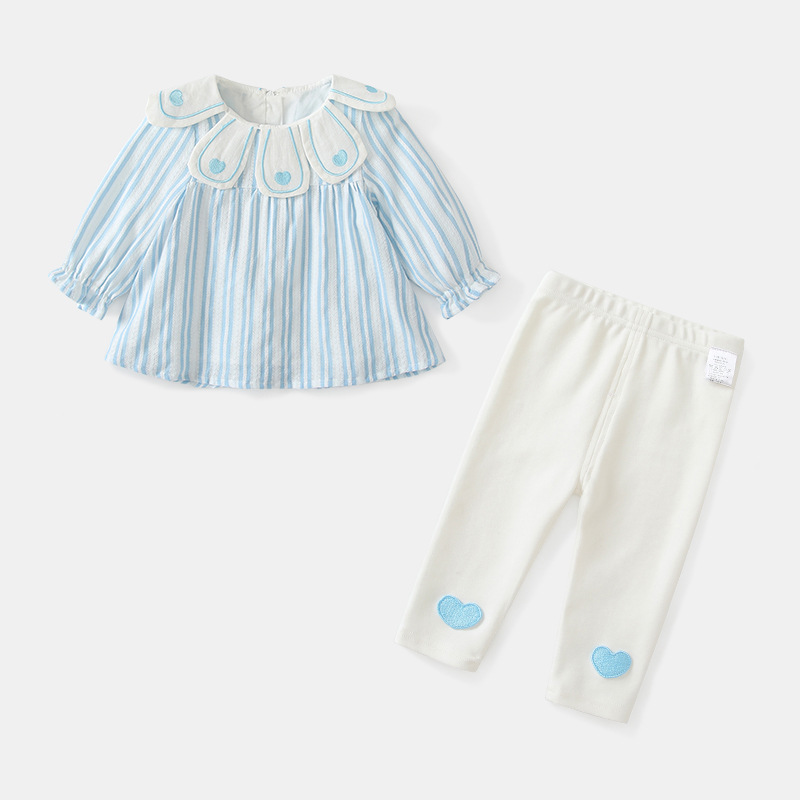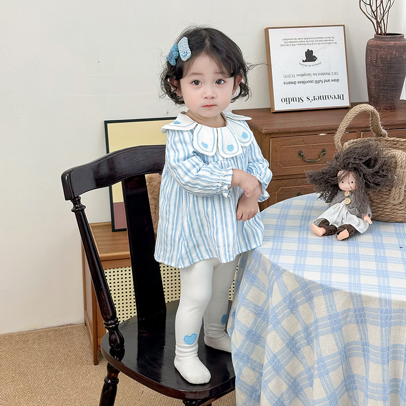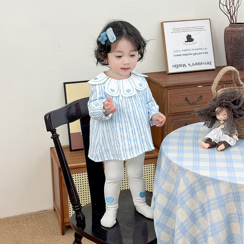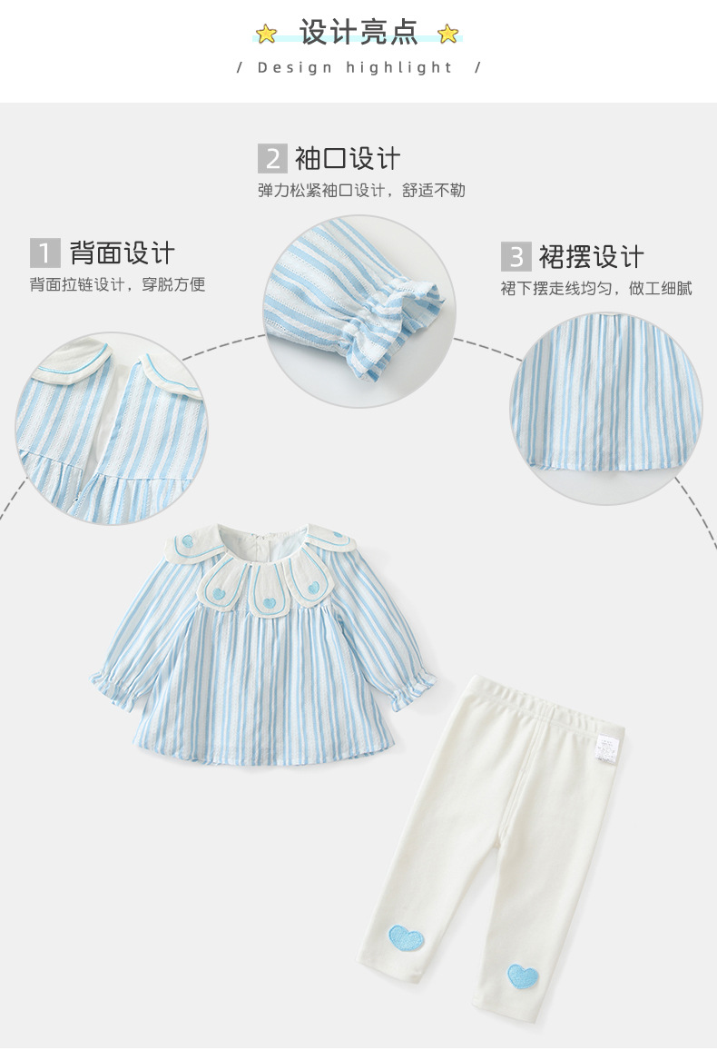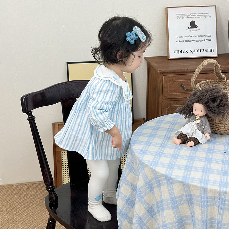 여자 세트 여성의 보물 봄 서양식 한국 스타일 귀여운 봄 새 세트 인형 칼라 투피스 줄무늬 세트스토어 가기