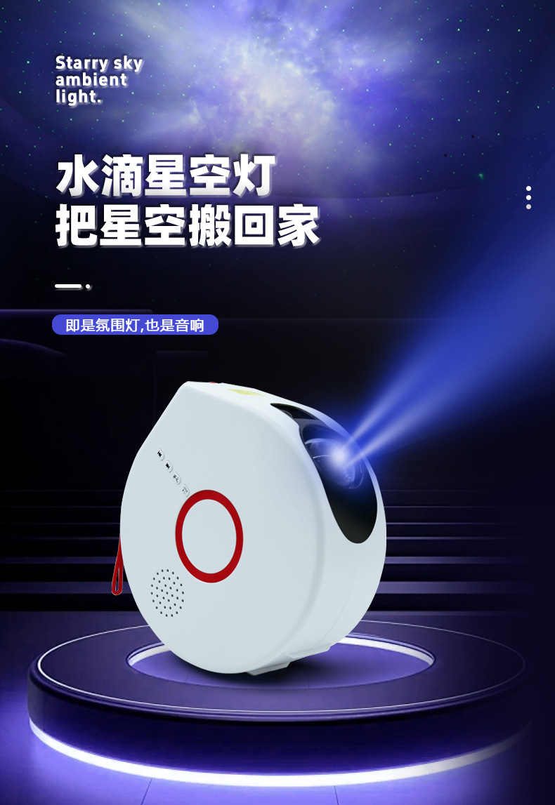 국경 간 신제품 블루투스 음악 워터 드롭 스타 빛 실내 분위기 빛 성운 스타 프로젝션 라이트 USB 야간 조명