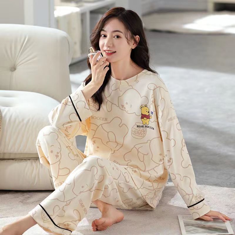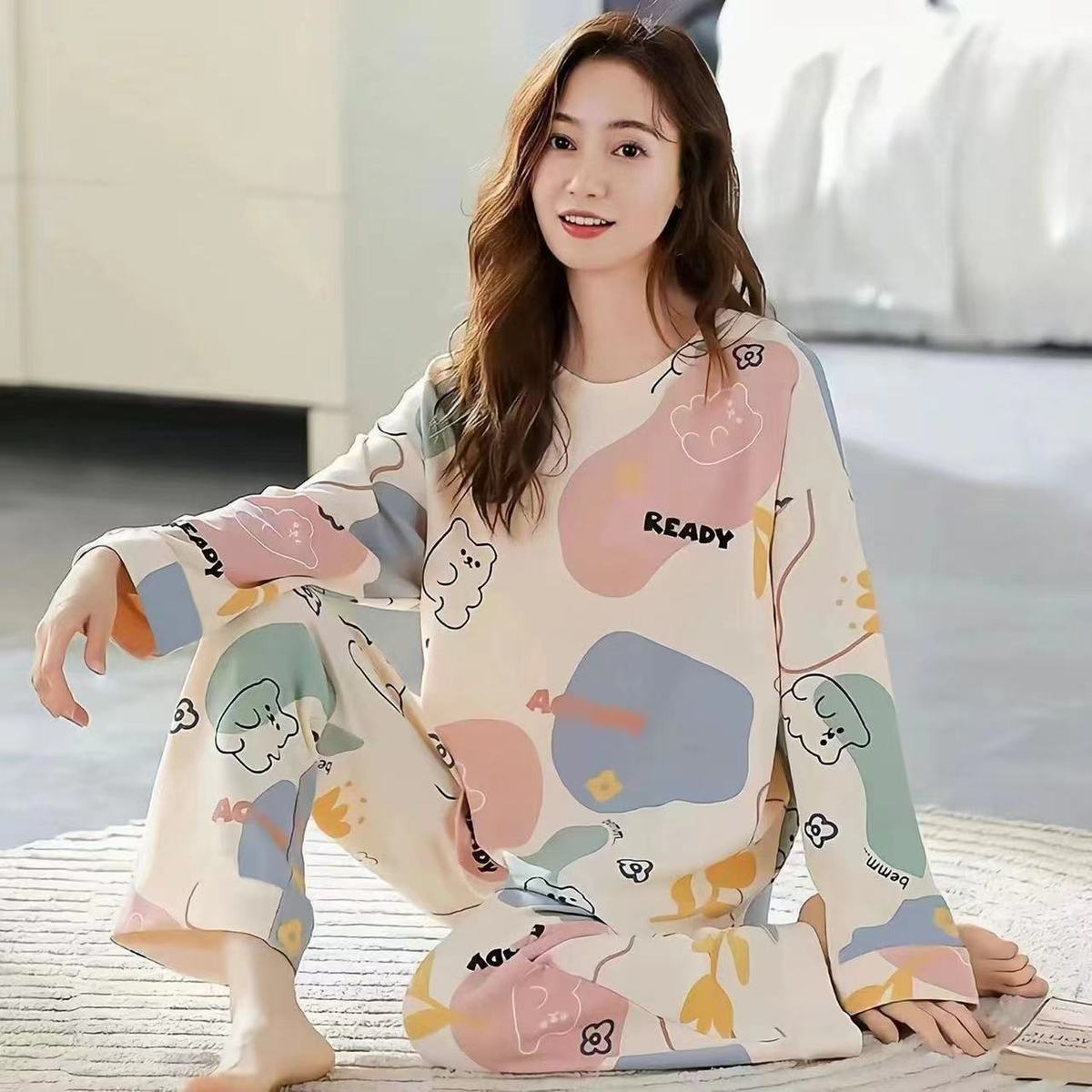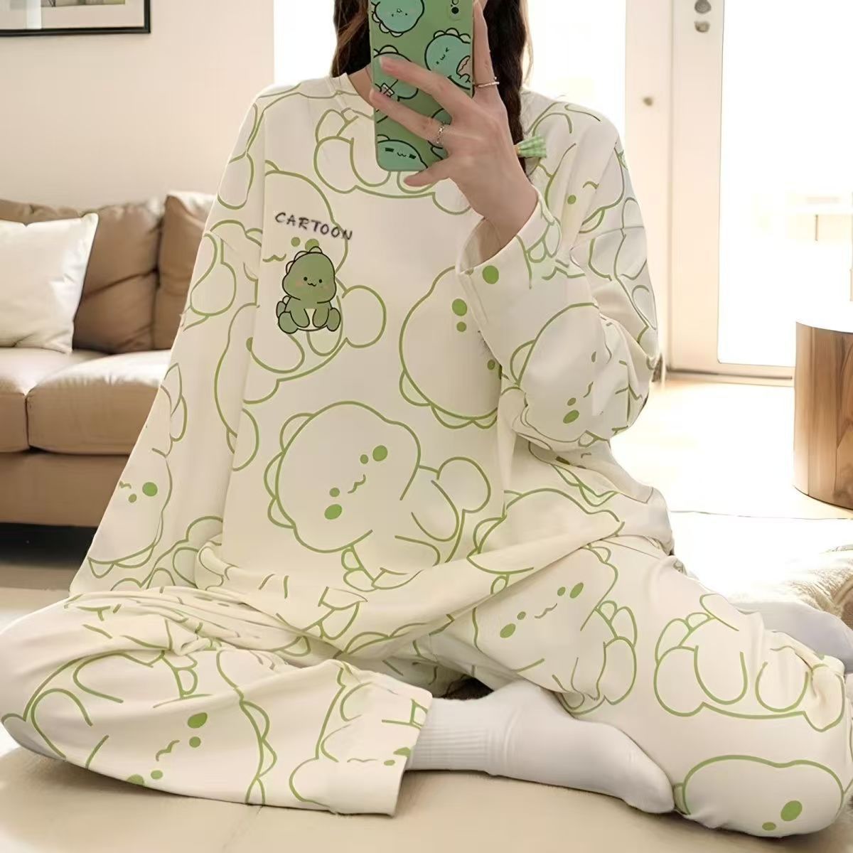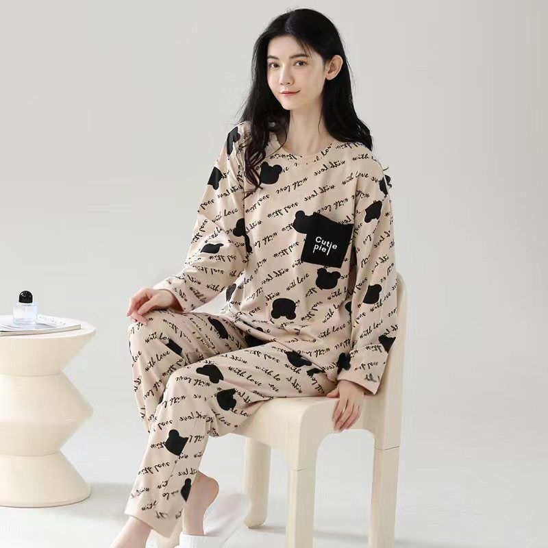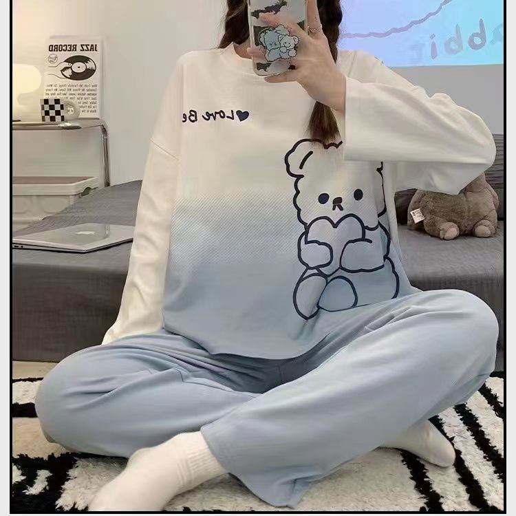 국경 간 플러스 사이즈 파자마 여성의 봄과 가을 외부 착용 느슨한 긴팔 귀여운 파자마 여성의 가을과 겨울 캐주얼 홈 의류스토어 가기