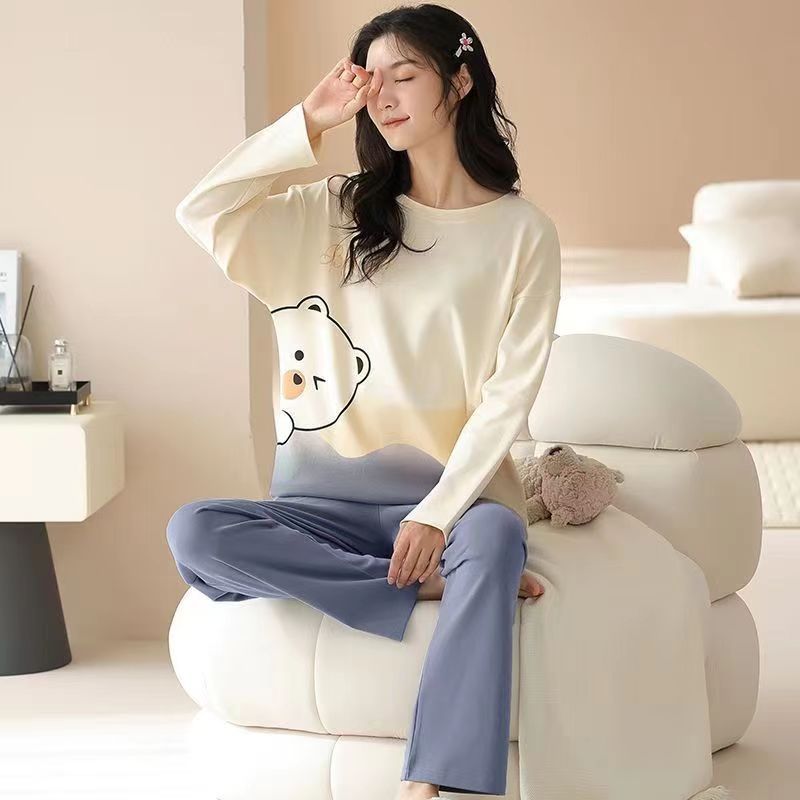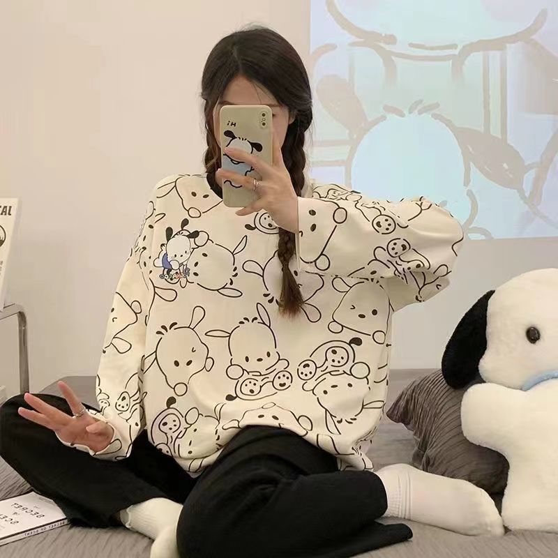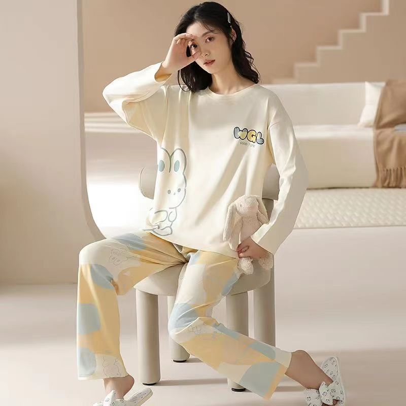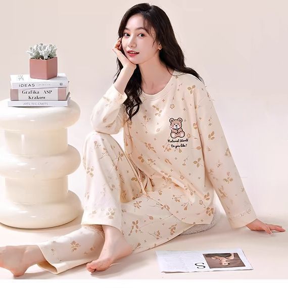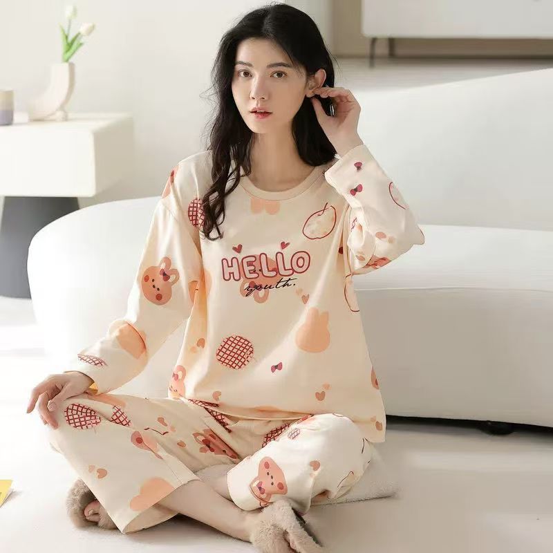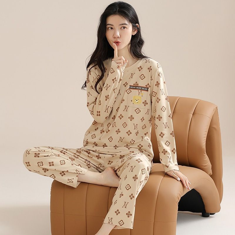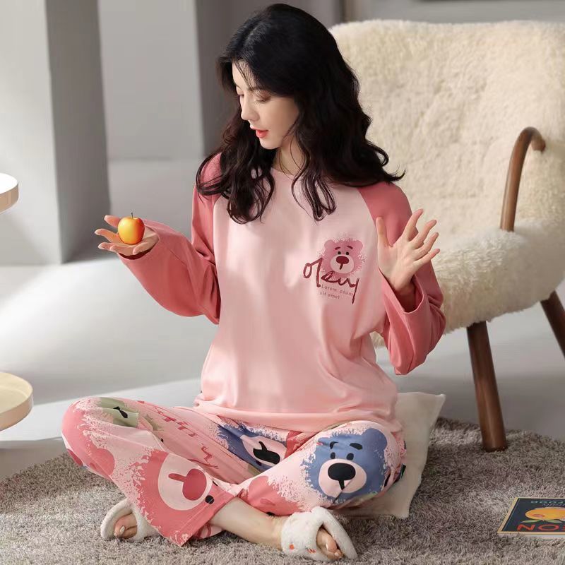 국경 간 플러스 사이즈 파자마 여성의 봄과 가을 외부 착용 느슨한 긴팔 귀여운 파자마 여성의 가을과 겨울 캐주얼 홈 의류스토어 가기