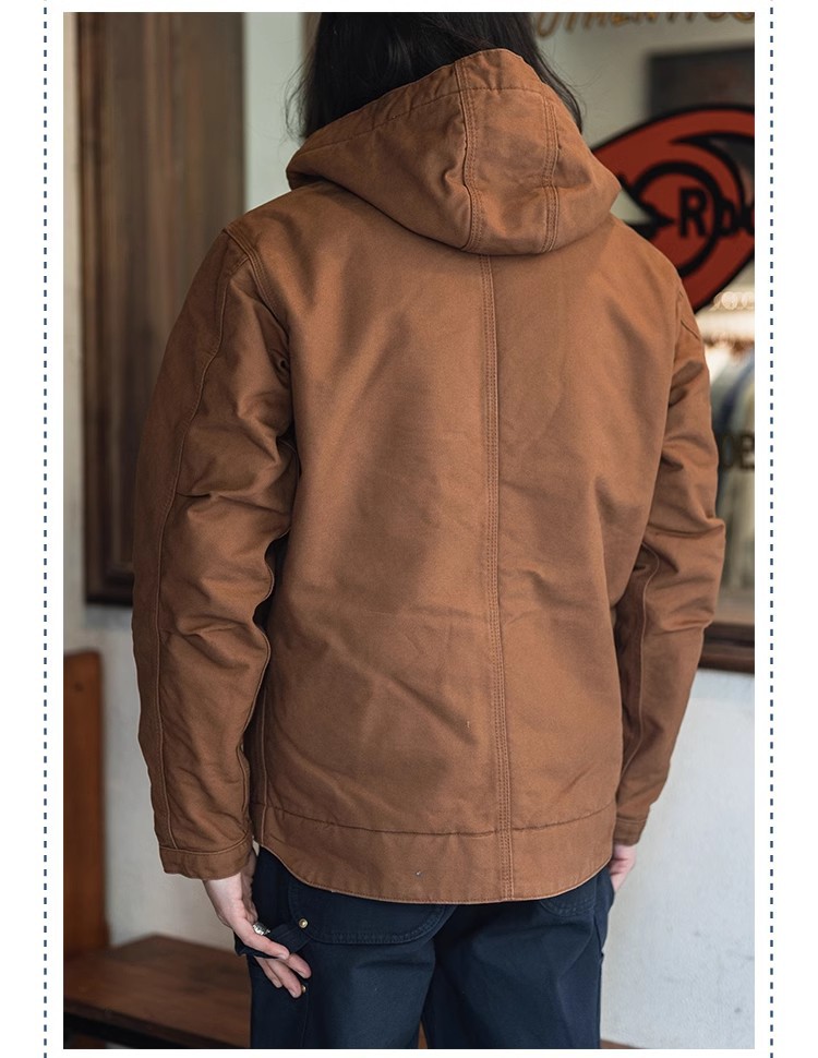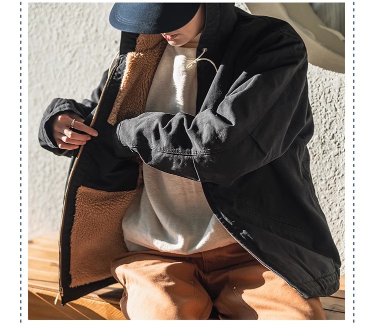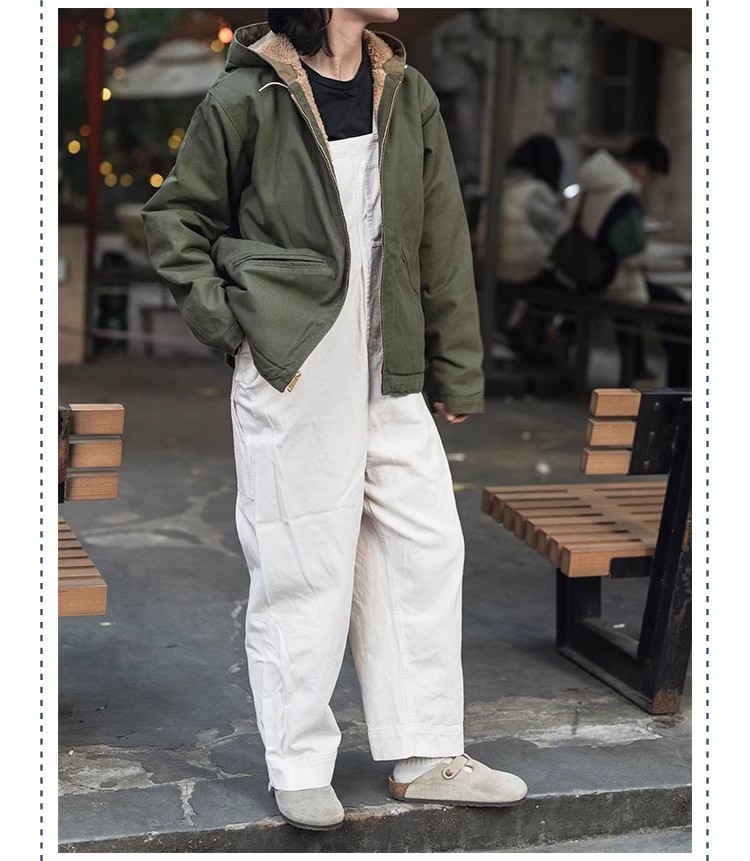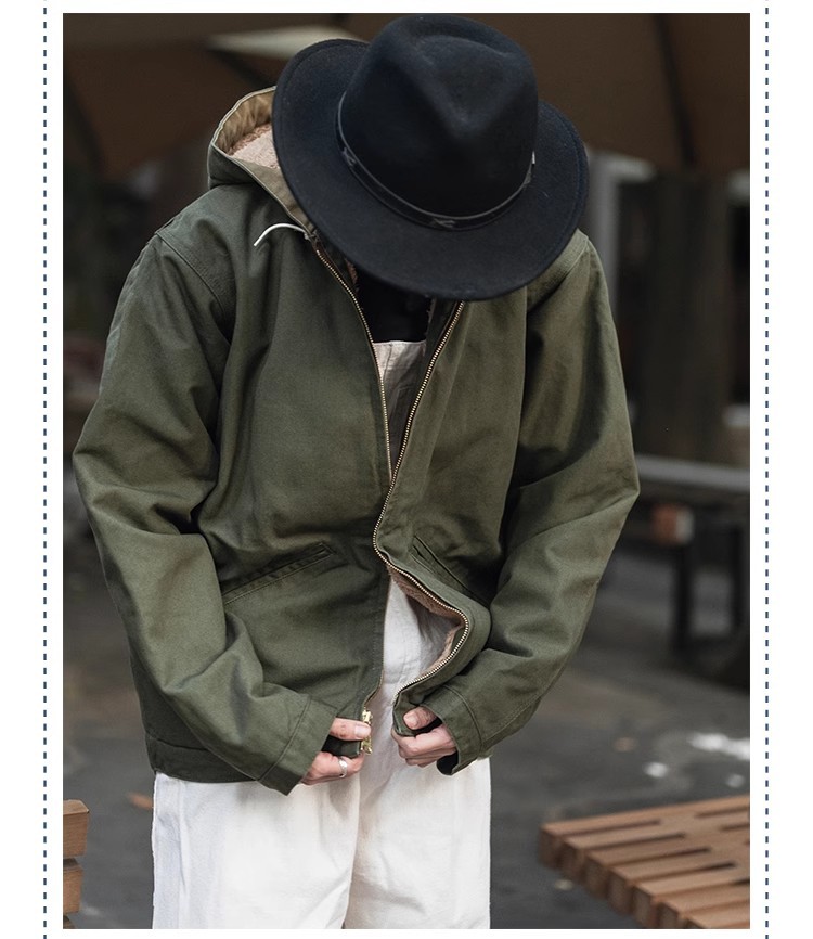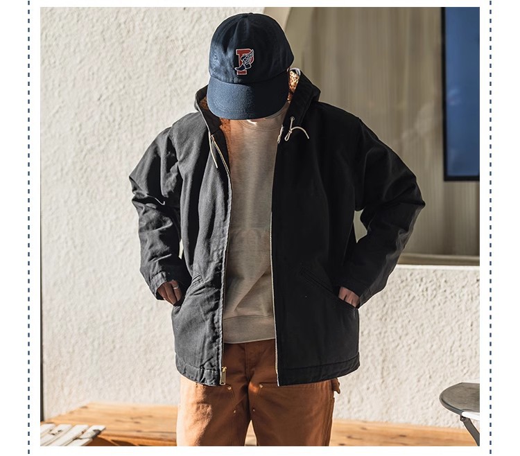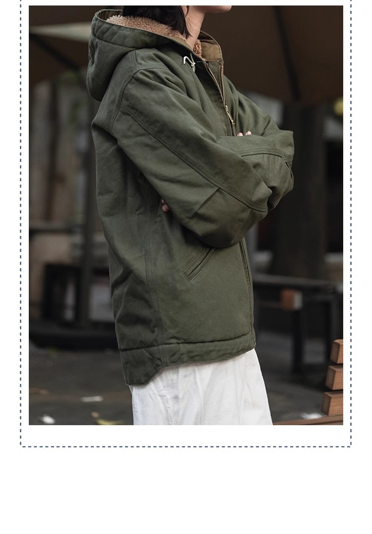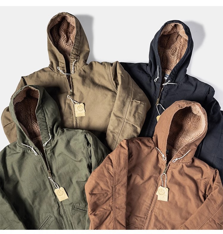 Qing Tian Old Age Retro 후드 코튼 패딩 재킷 야외 캐주얼 양고기 양털 방풍 따뜻한 캔버스 오버홀 재킷스토어 가기