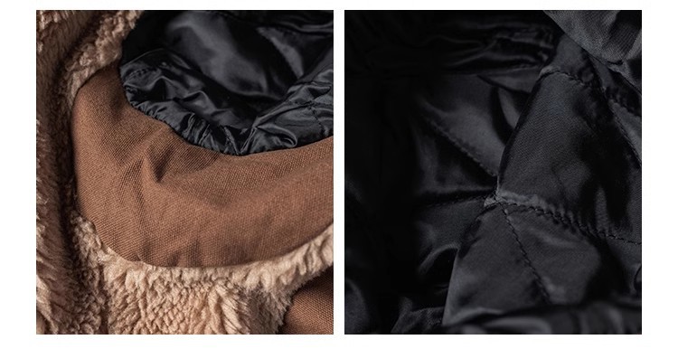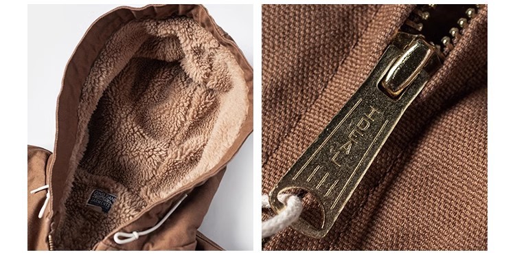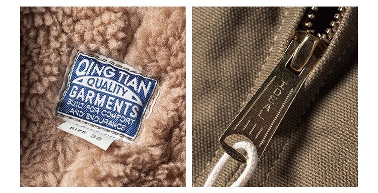 Qing Tian Old Age Retro 후드 코튼 패딩 재킷 야외 캐주얼 양고기 양털 방풍 따뜻한 캔버스 오버홀 재킷