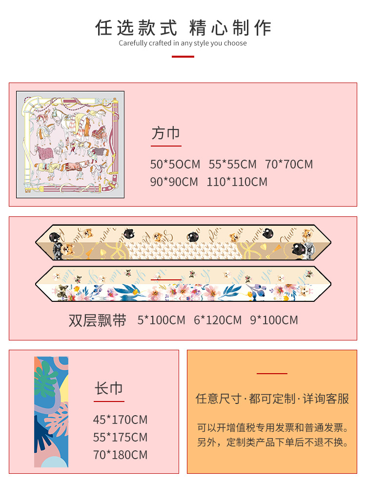 실크 스카프 작은 단일 사용자 정의 두 배 그림 인쇄 로고 스퀘어 스카프 휴일 선물 고급 감각 실크 스카프스토어 가기