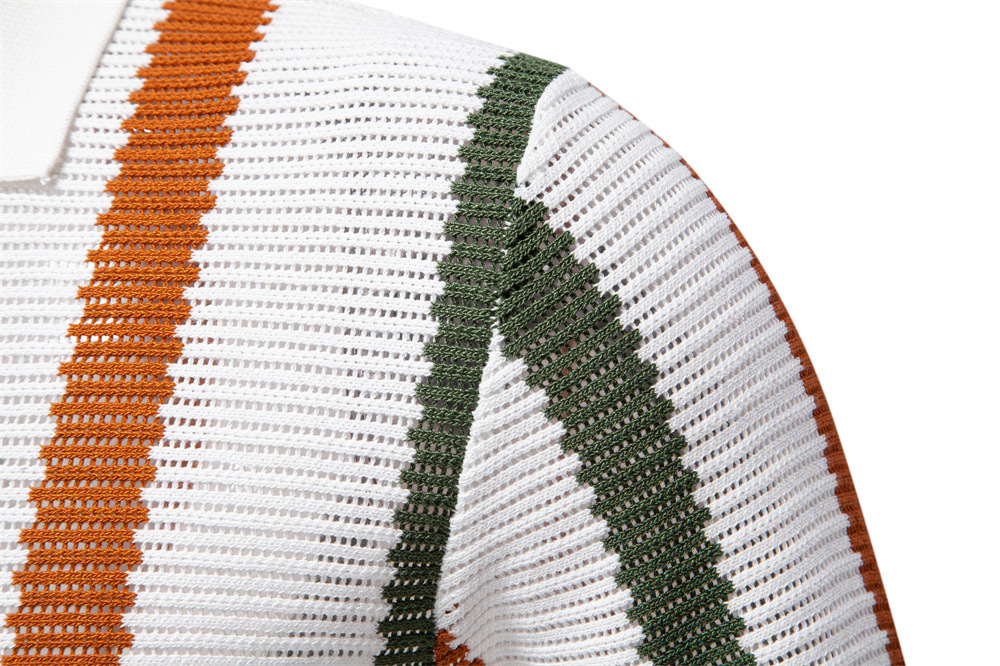 2025 년 여름 새로운 통기성 중공 남자 반팔 폴로 스웨터 스트라이프 유럽 사이즈 니트 폴로 셔츠