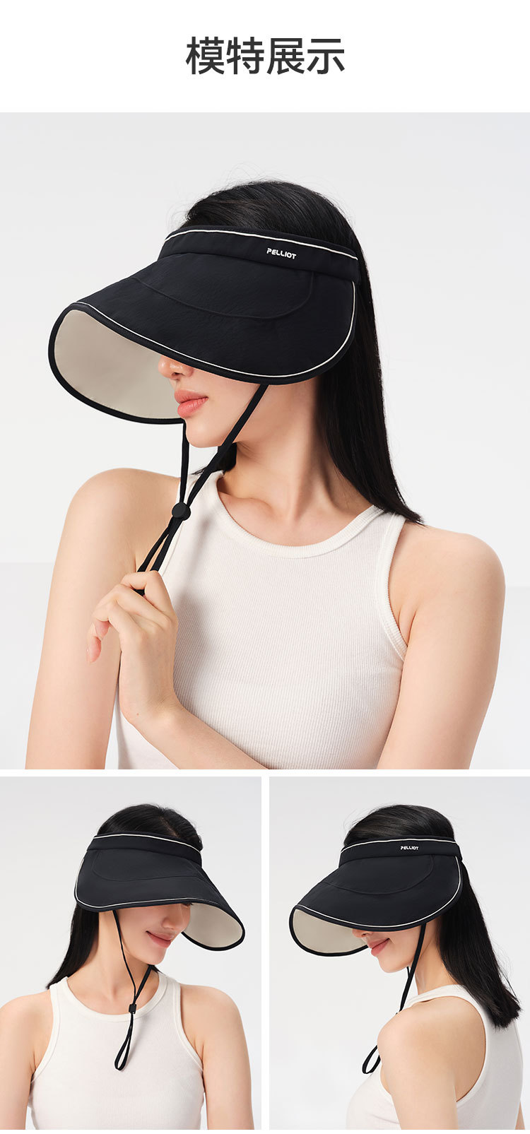 퍼시와 빈 탑 선 스크린 모자 여성의 여름 야외 UV 보호 블랙 접착제 큰 브림 접이식 전체 얼굴 햇빛 모자