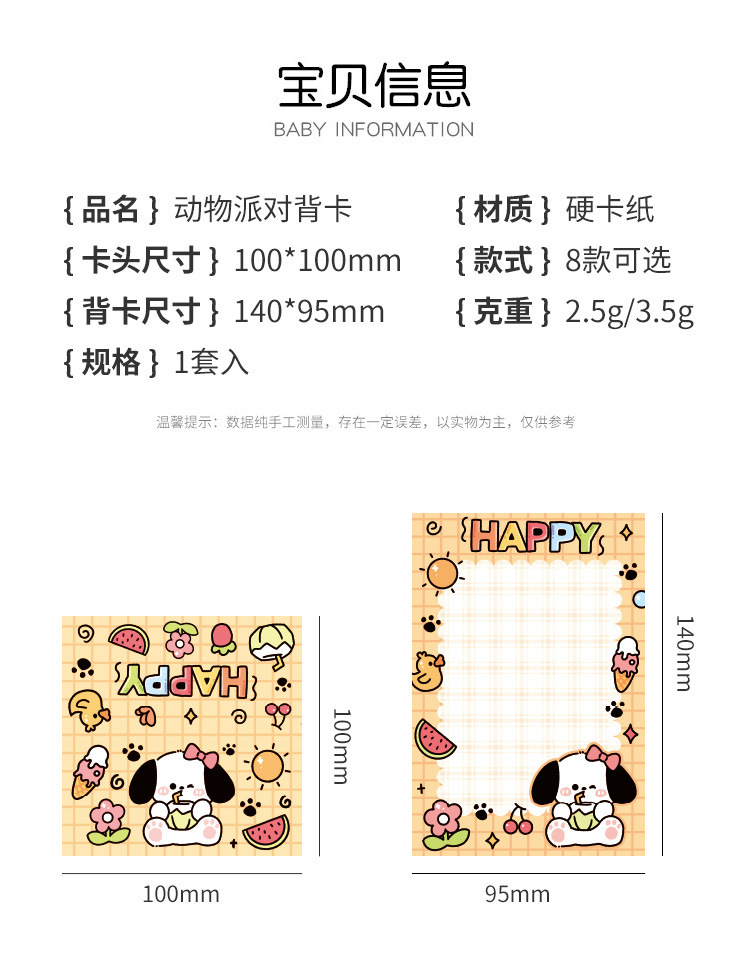 동물 파티 시리즈 귀여운 카드 헤드 카드 백 세트 자체 인쇄 diy 카드 포장 재료 작은 카드 goo 카드 제조 업체스토어 가기