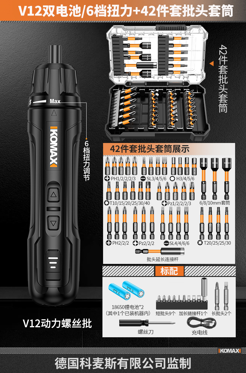 • V6 전원 표준 구성 + 비트 12개 + 드릴 비트 2개 + 자화 + 슬리브 9 + 유연한 샤프트 + 확장 비트 2