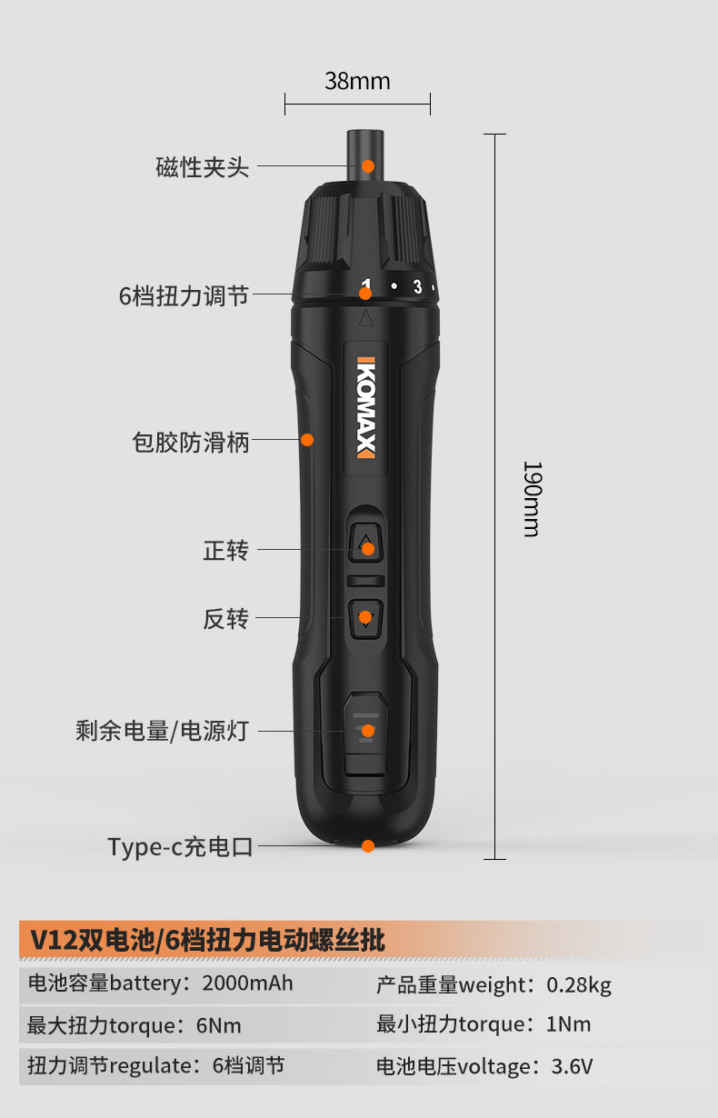 • V6 전동 드라이버 [플라스틱 박스 패키지]