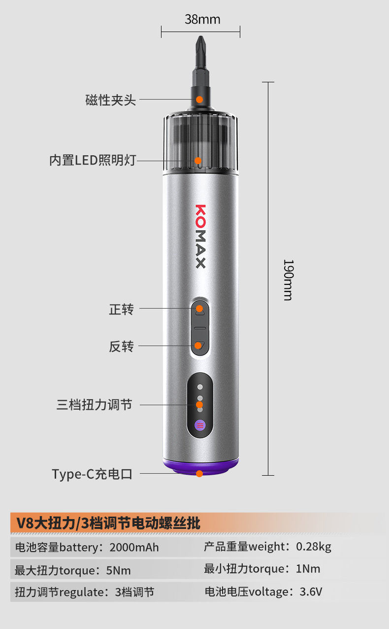• V4 전원 표준 구성 + 비트 12개 + 드릴 비트 2개 + 자화 + 슬리브 9 + 유연한 샤프트 + 확장 비트 2