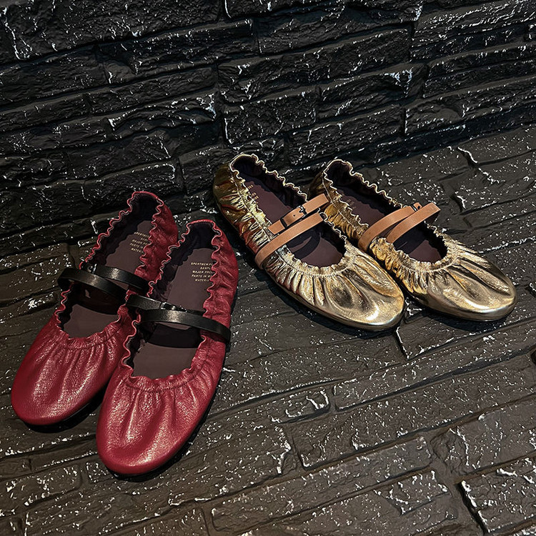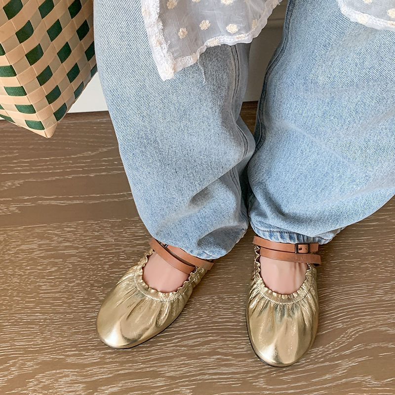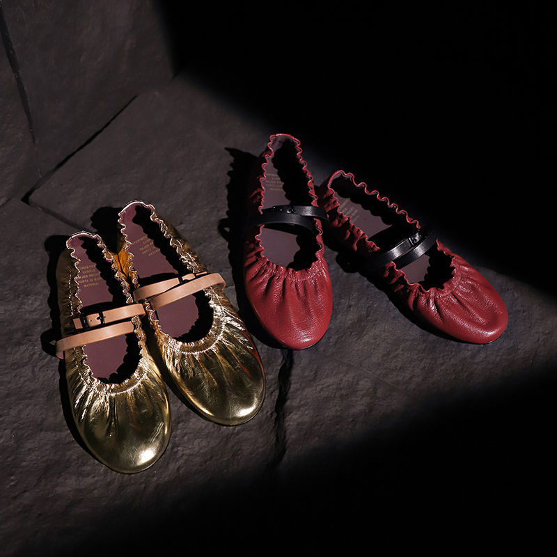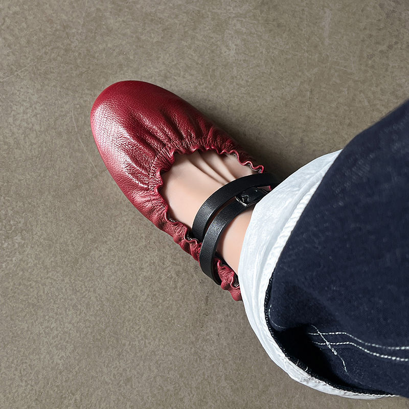 전체 가죽 주름 메리 제인 신발 내부 및 외부 여성용 플랫 힐 신발 새로운 둥근 발가락 부드러운 가죽 부드러운 바닥 얕은 입 신발스토어 가기