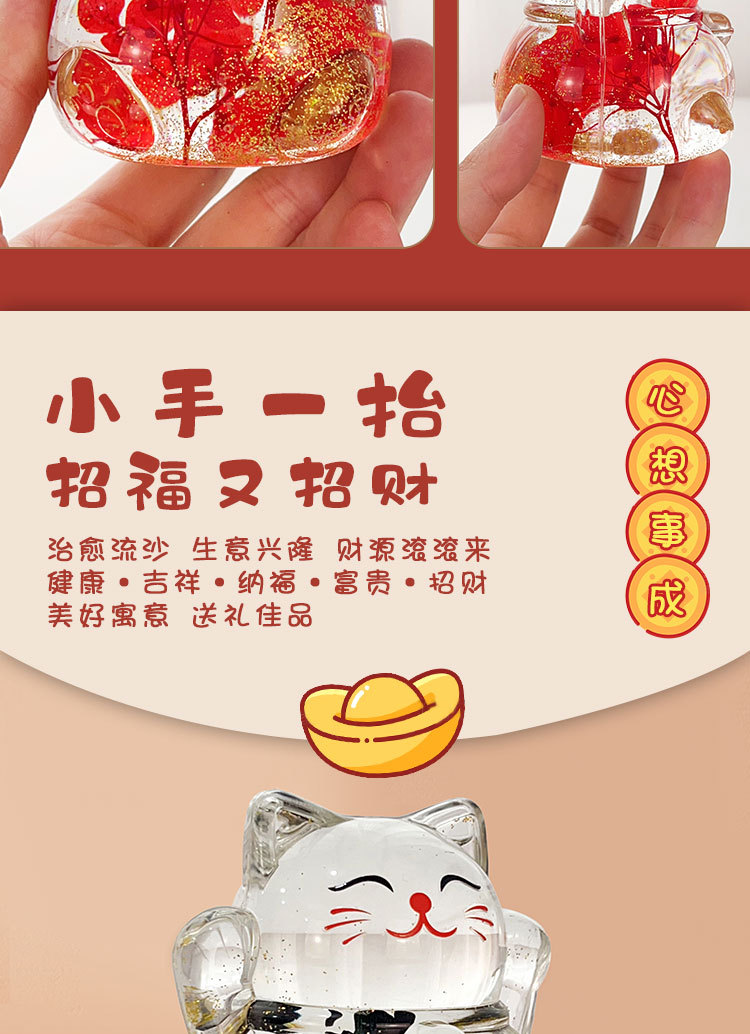 흔들리는 소리 폭발 퀵 샌드 플래시 럭키 고양이 데스크탑 손 장식품 블라인드 박스 블라인드 가방 빛나는 퀵샌드 병스토어 가기