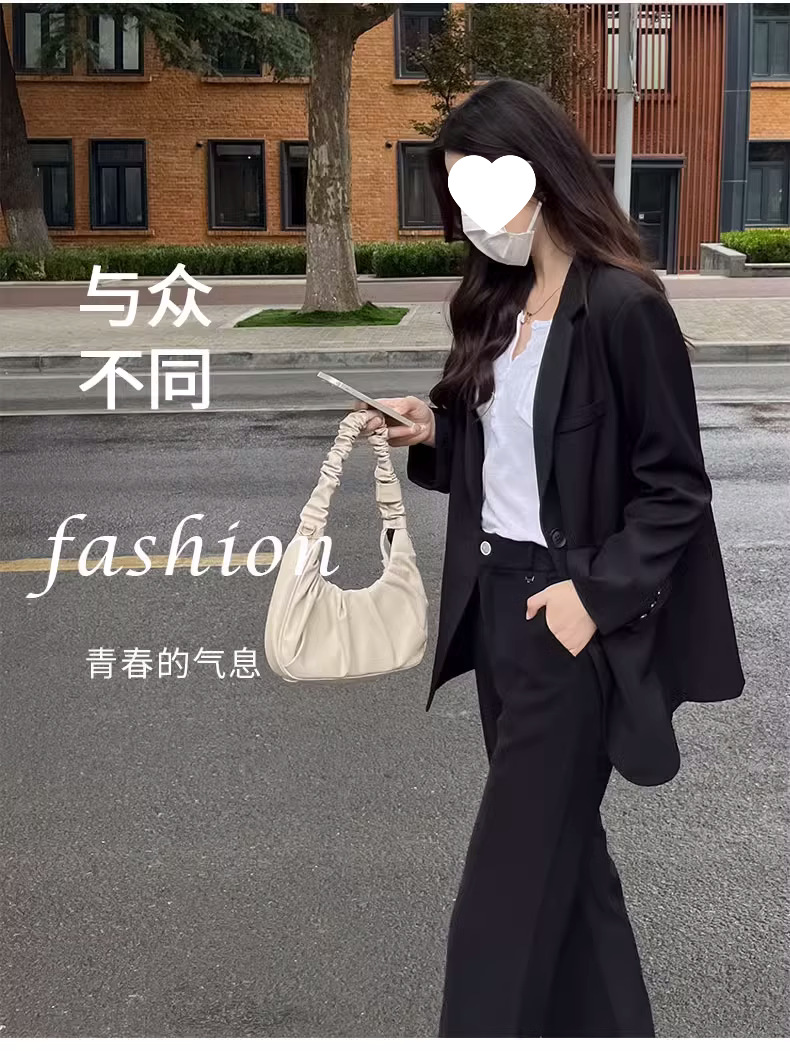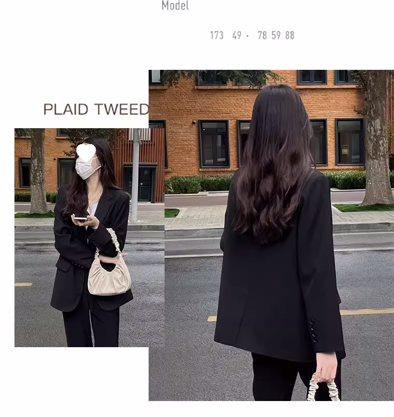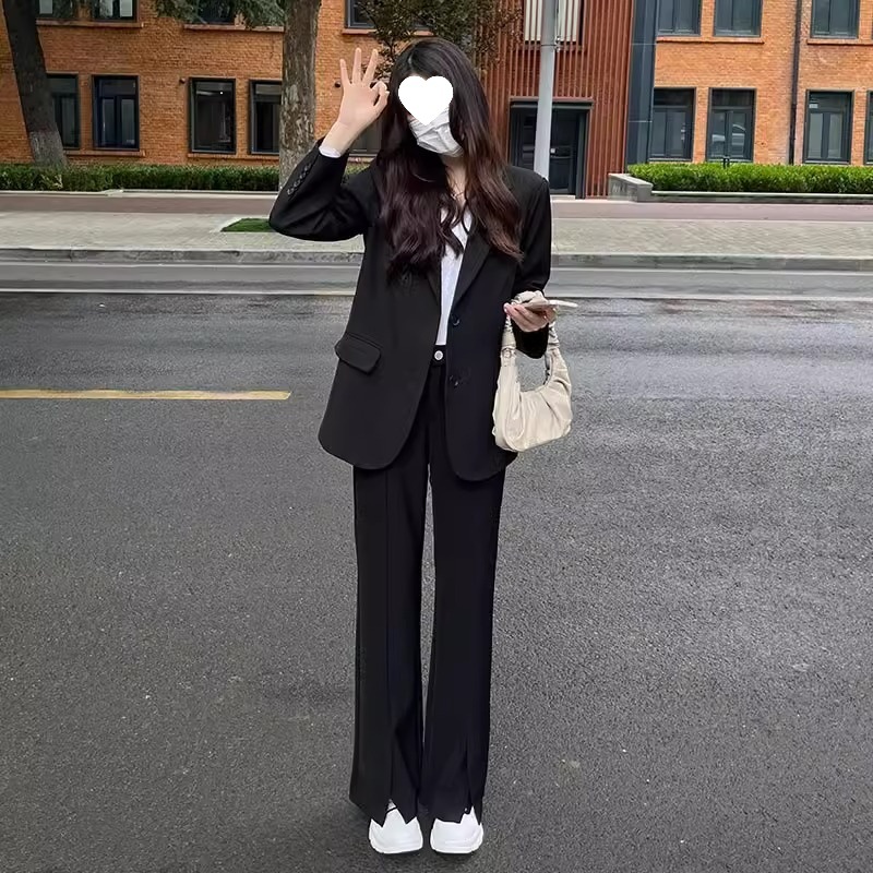 폭발 하이 엔드 공무원 작업 옷 검은 세트 세트 여대생 UGC 인터뷰에 응답 새로운 스타일 보내기스토어 가기