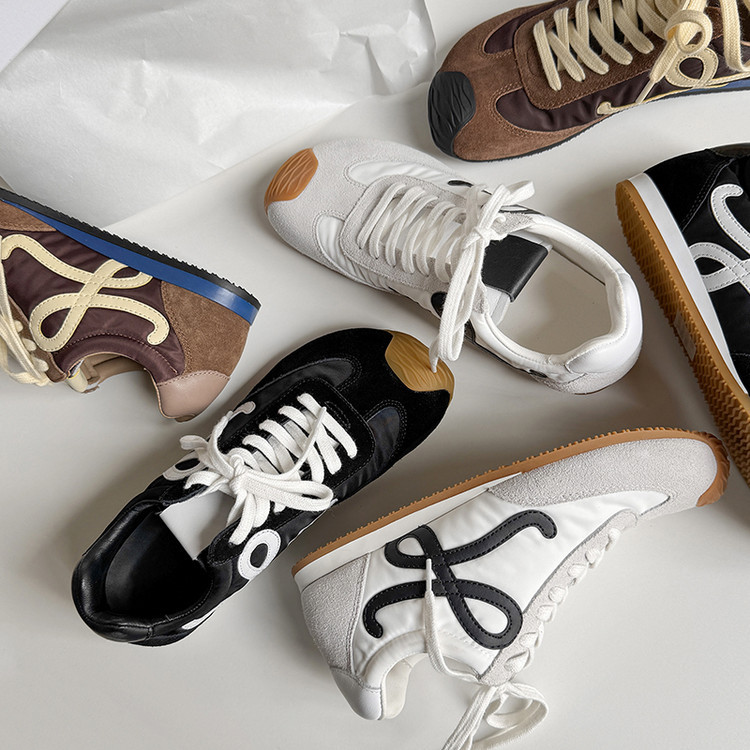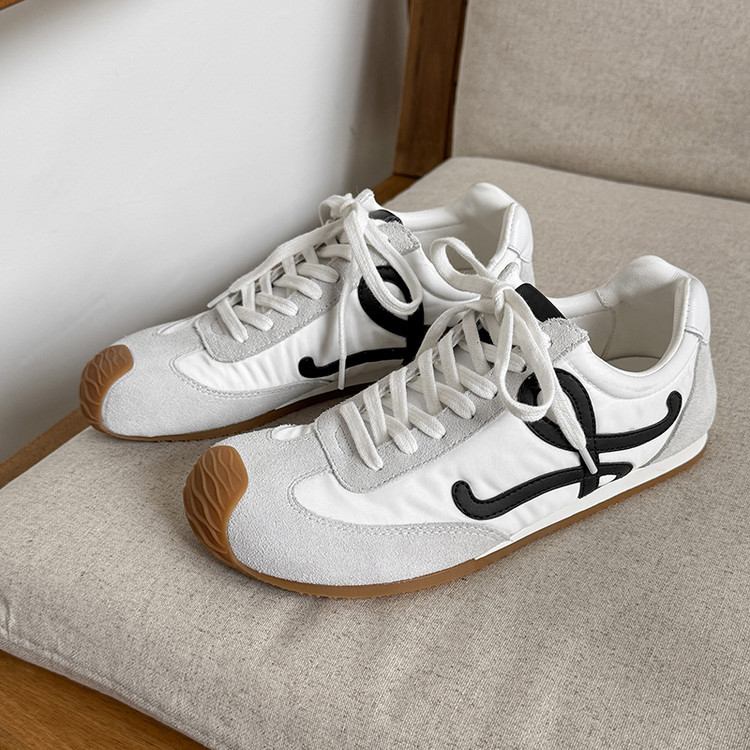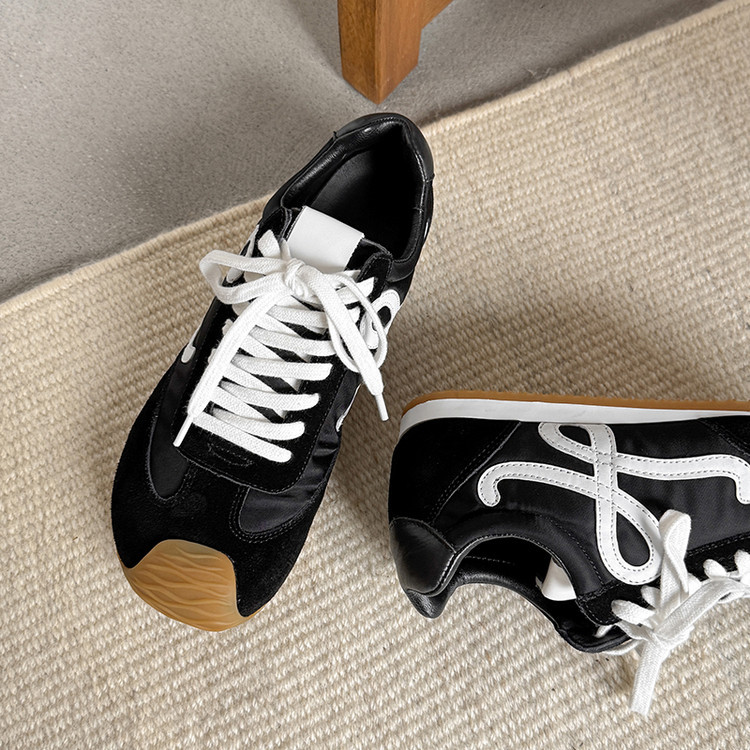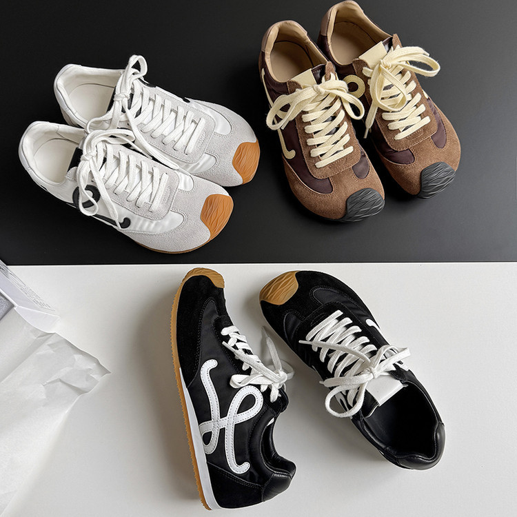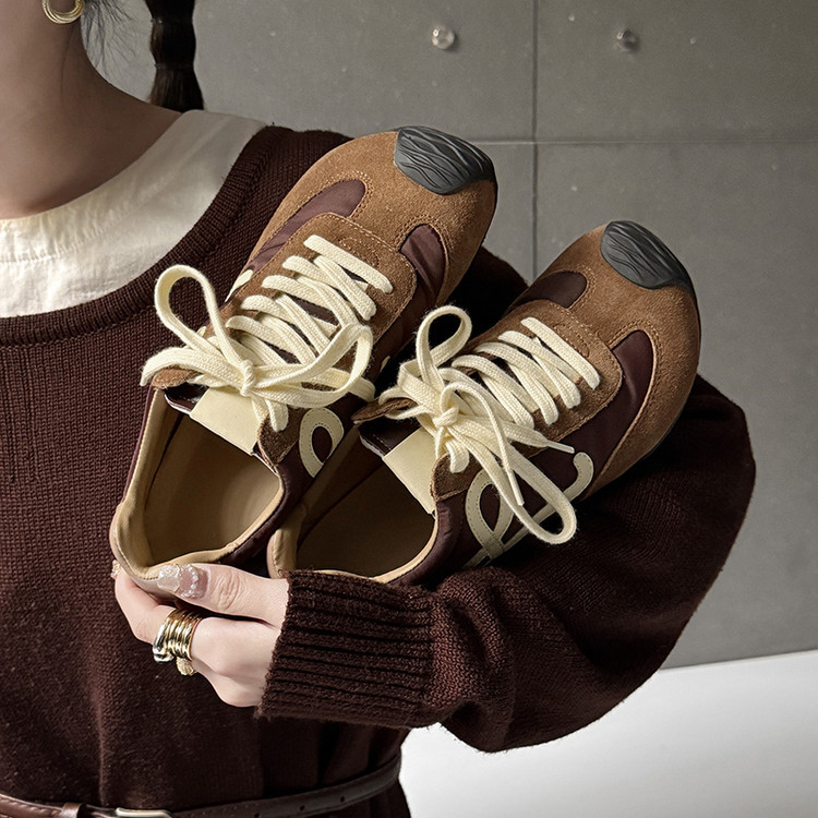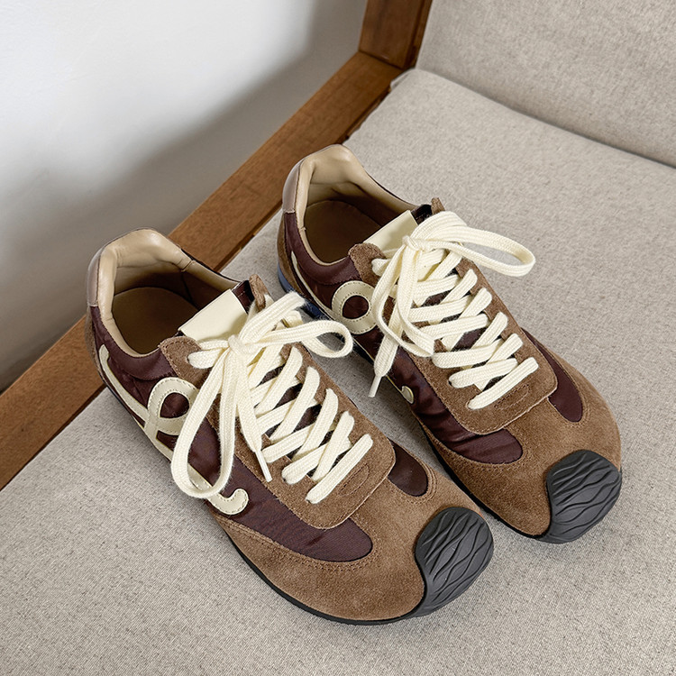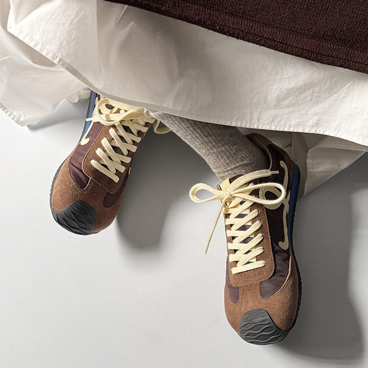 암소 껍질 방수 직물 스포츠 캐주얼 신발 여성 봄 새로운 라운드 토 레이스 업 컬러 매칭 플랫 힐 스포츠 신발스토어 가기