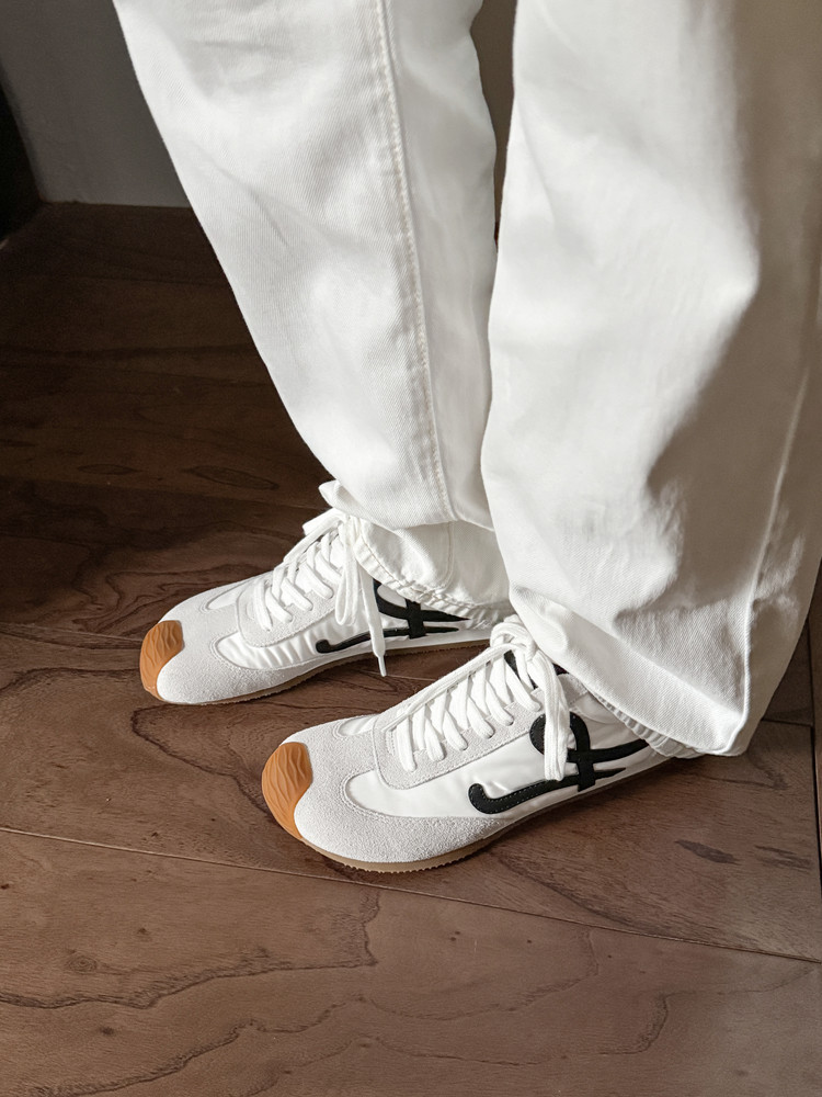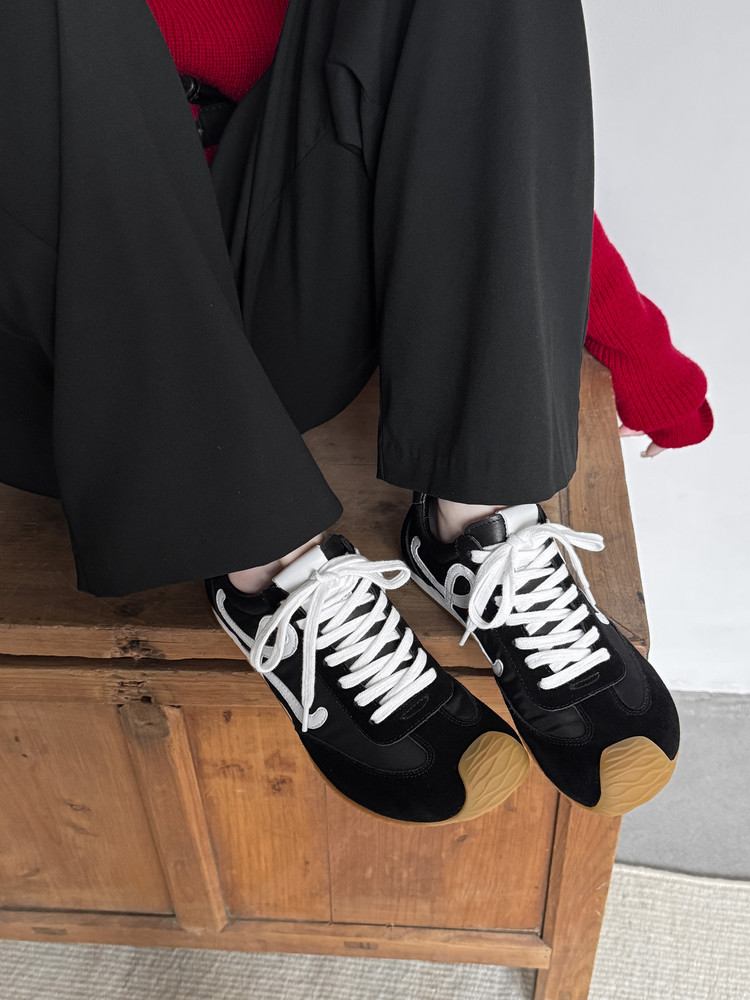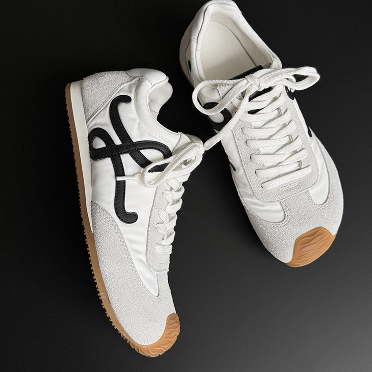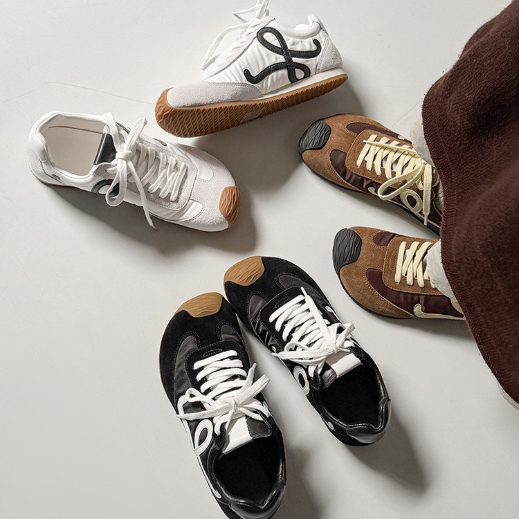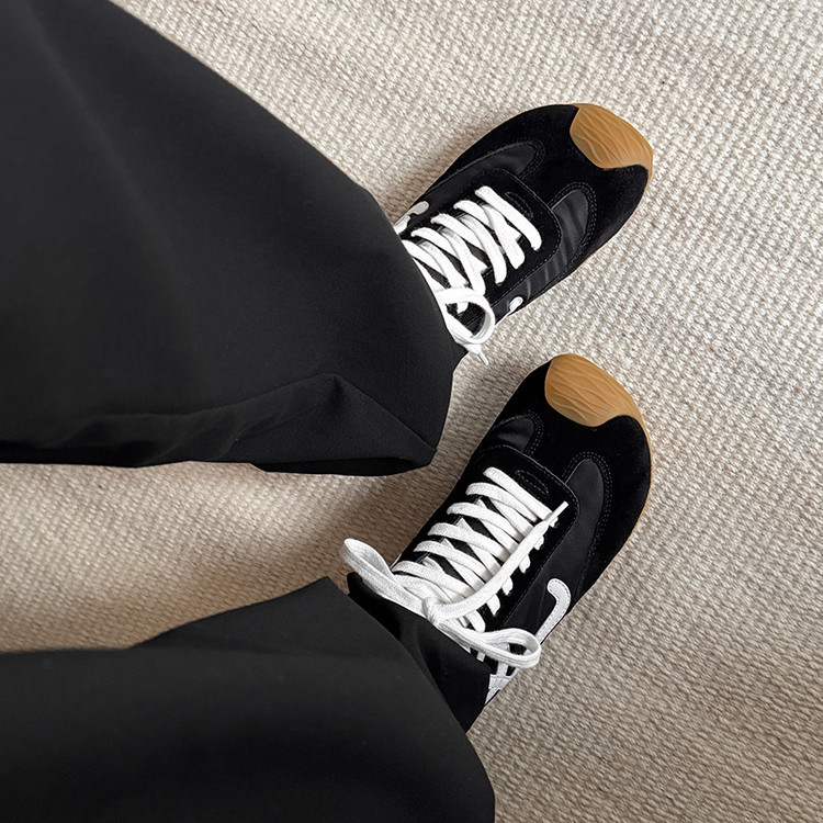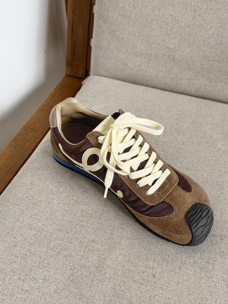 암소 껍질 방수 직물 스포츠 캐주얼 신발 여성 봄 새로운 라운드 토 레이스 업 컬러 매칭 플랫 힐 스포츠 신발스토어 가기