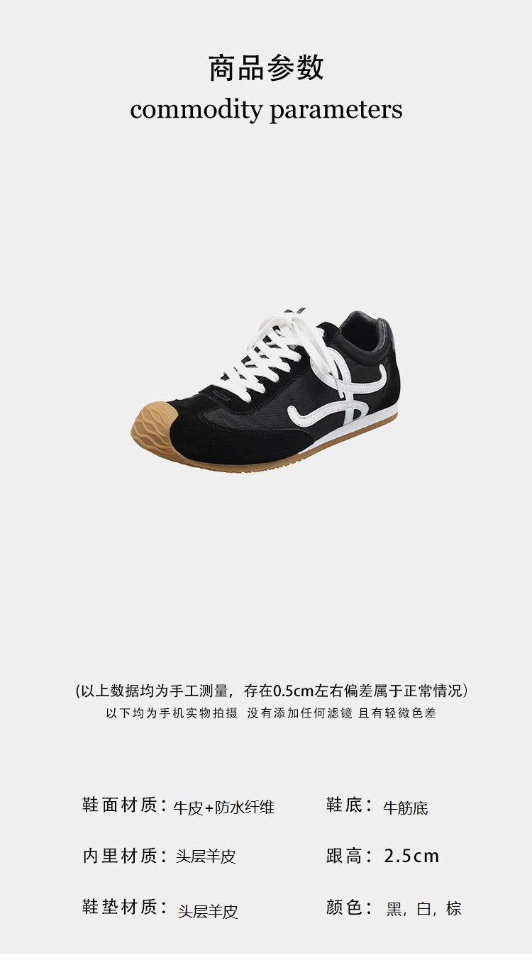 암소 껍질 방수 직물 스포츠 캐주얼 신발 여성 봄 새로운 라운드 토 레이스 업 컬러 매칭 플랫 힐 스포츠 신발