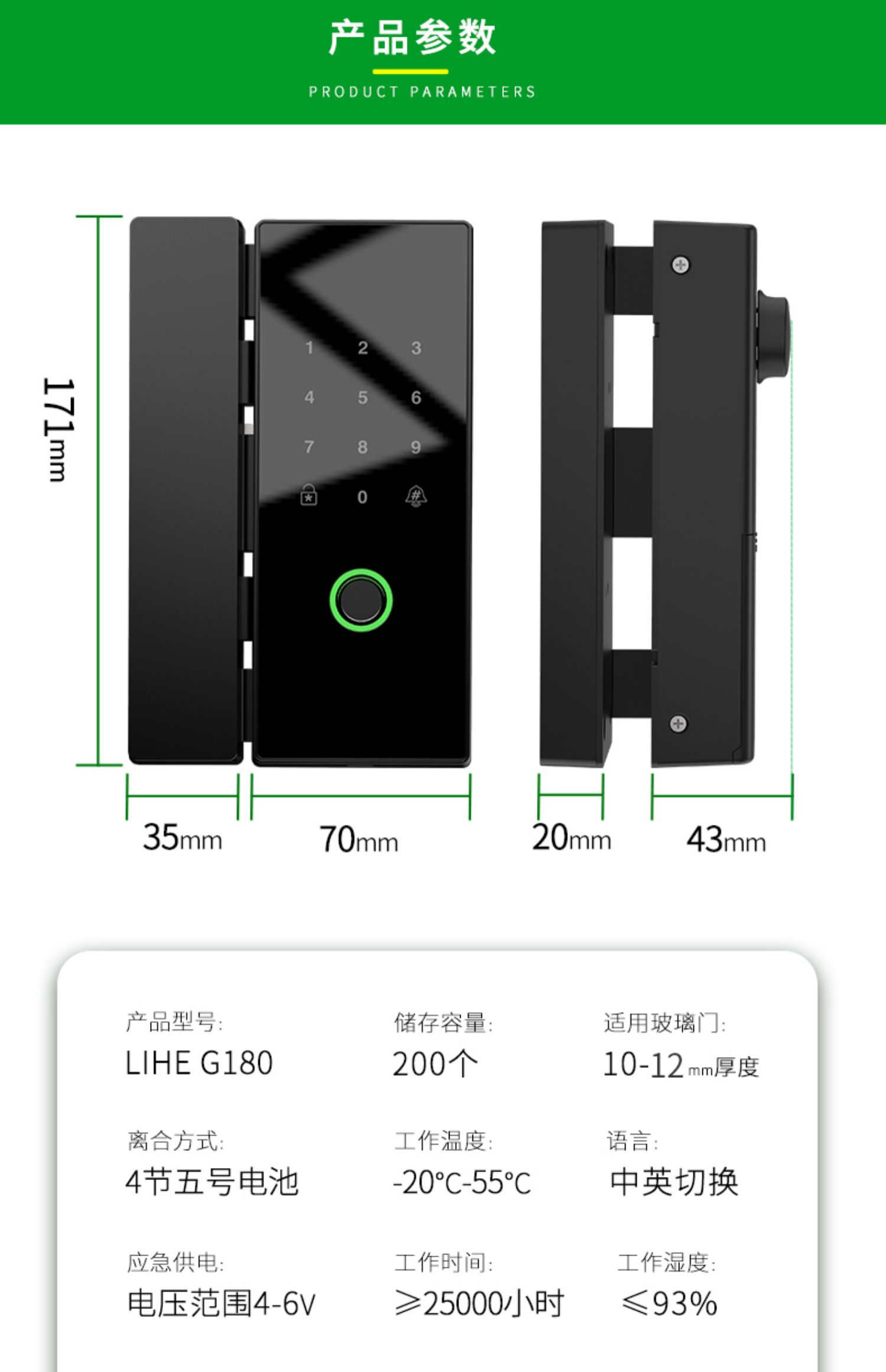 일반 유리 도어 지문 잠금 잠금 잠금 잠금 장치 배선 더블 도어 프레임 도어 샵 암호 전자 액세스 잠금 장치