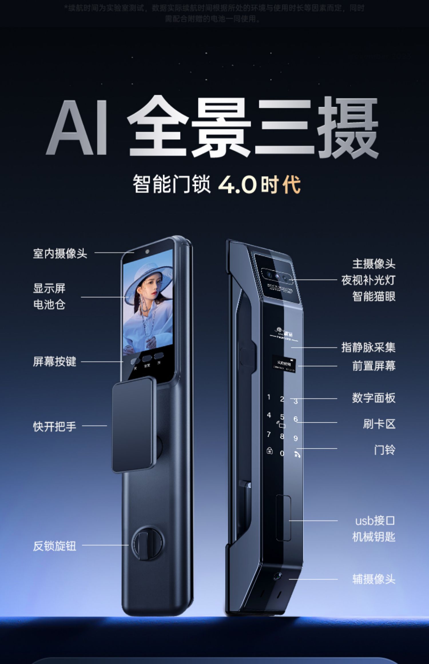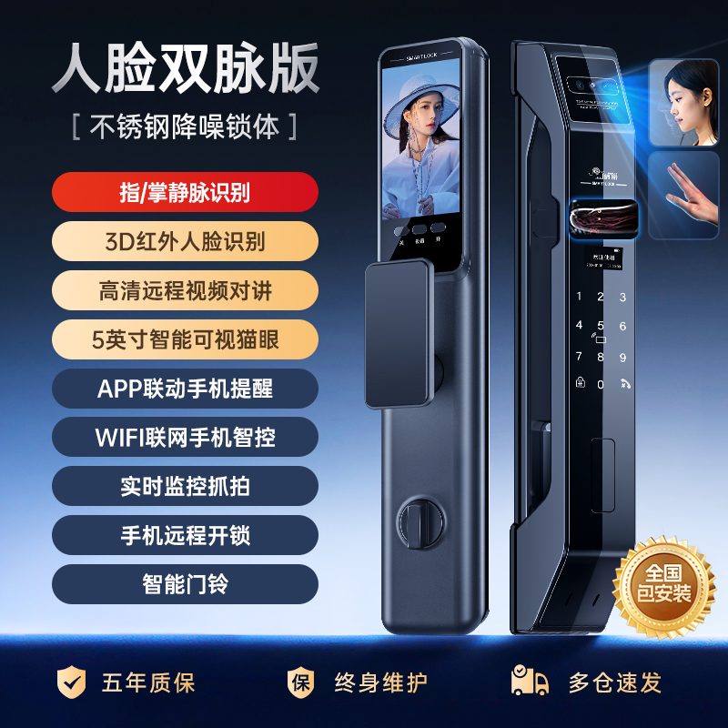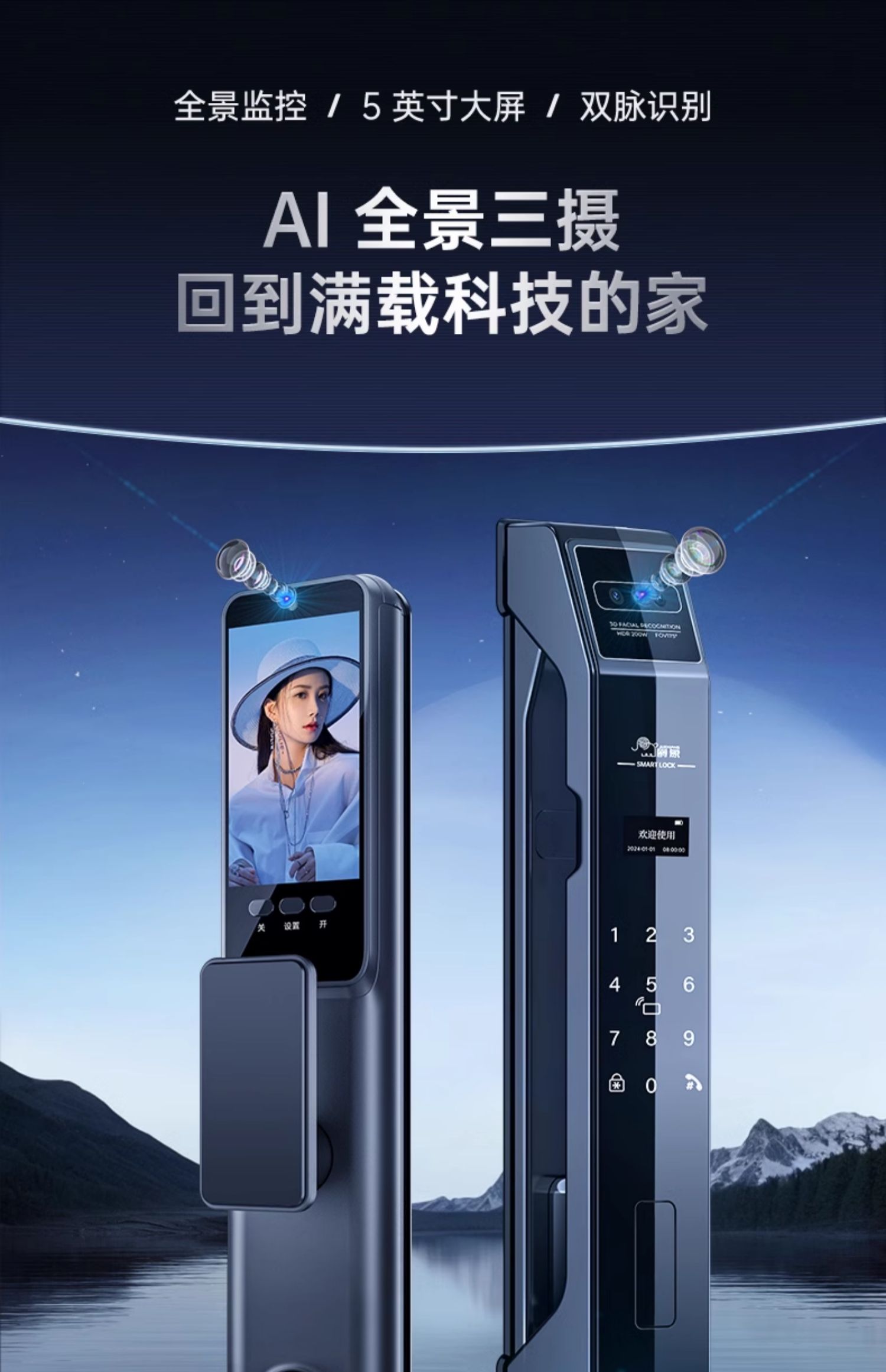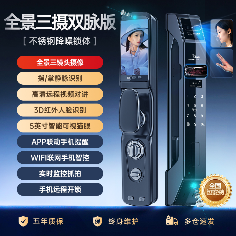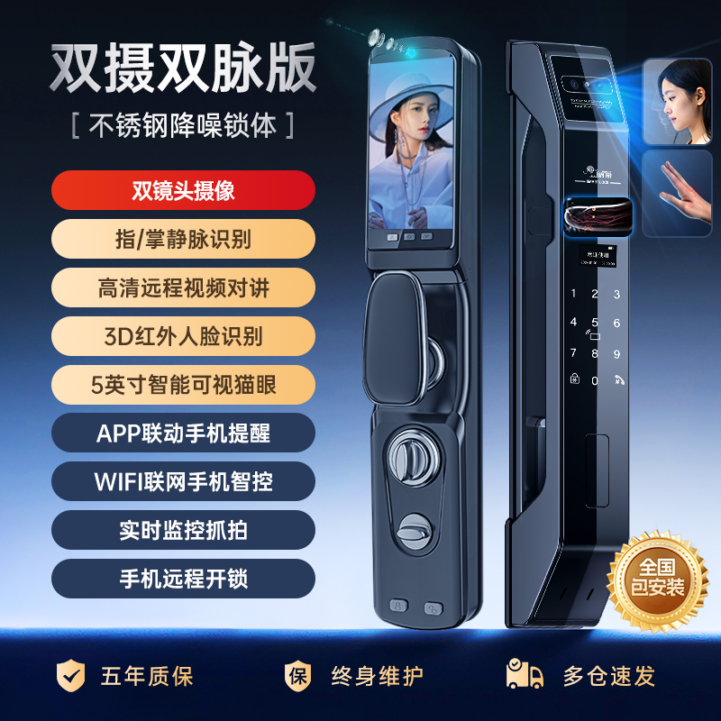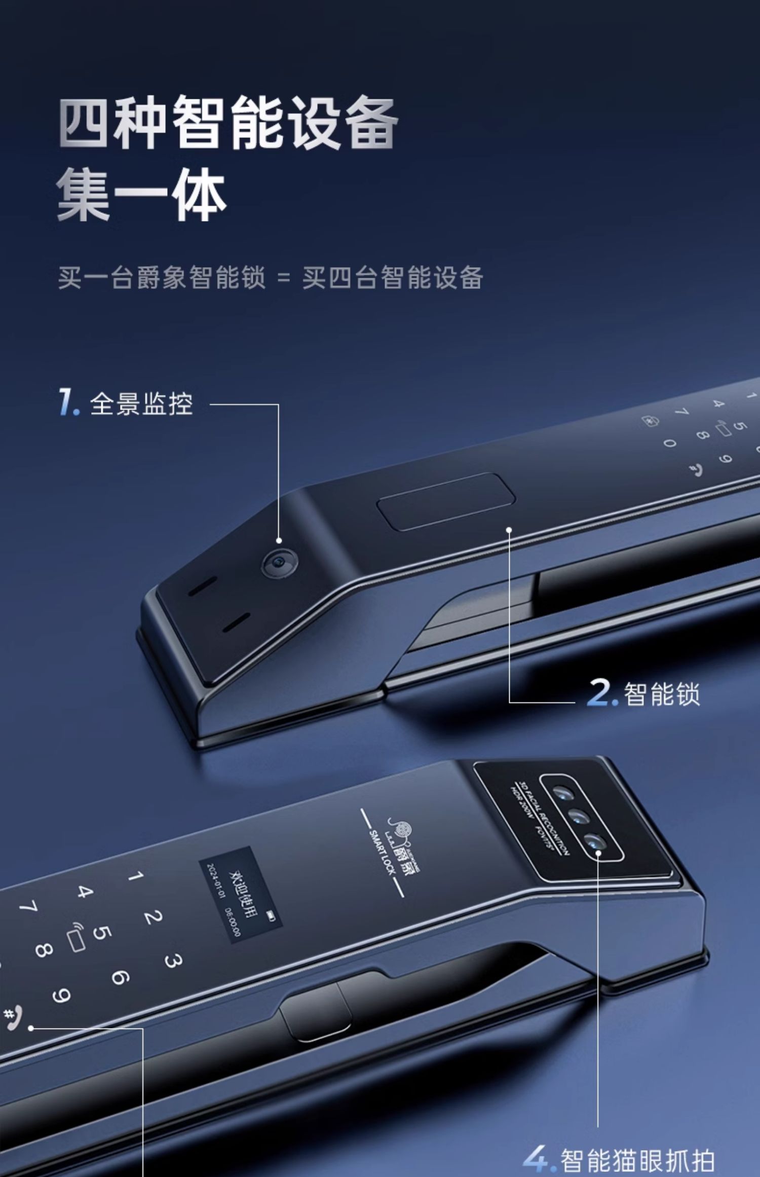 • [듀얼 렌즈 모니터링 + 3D 얼굴 인식 + 손가락/손바닥 정맥 + 비디오 인터콤 + 고화질 고양이 눈 + 휴대폰 지능형 제어]