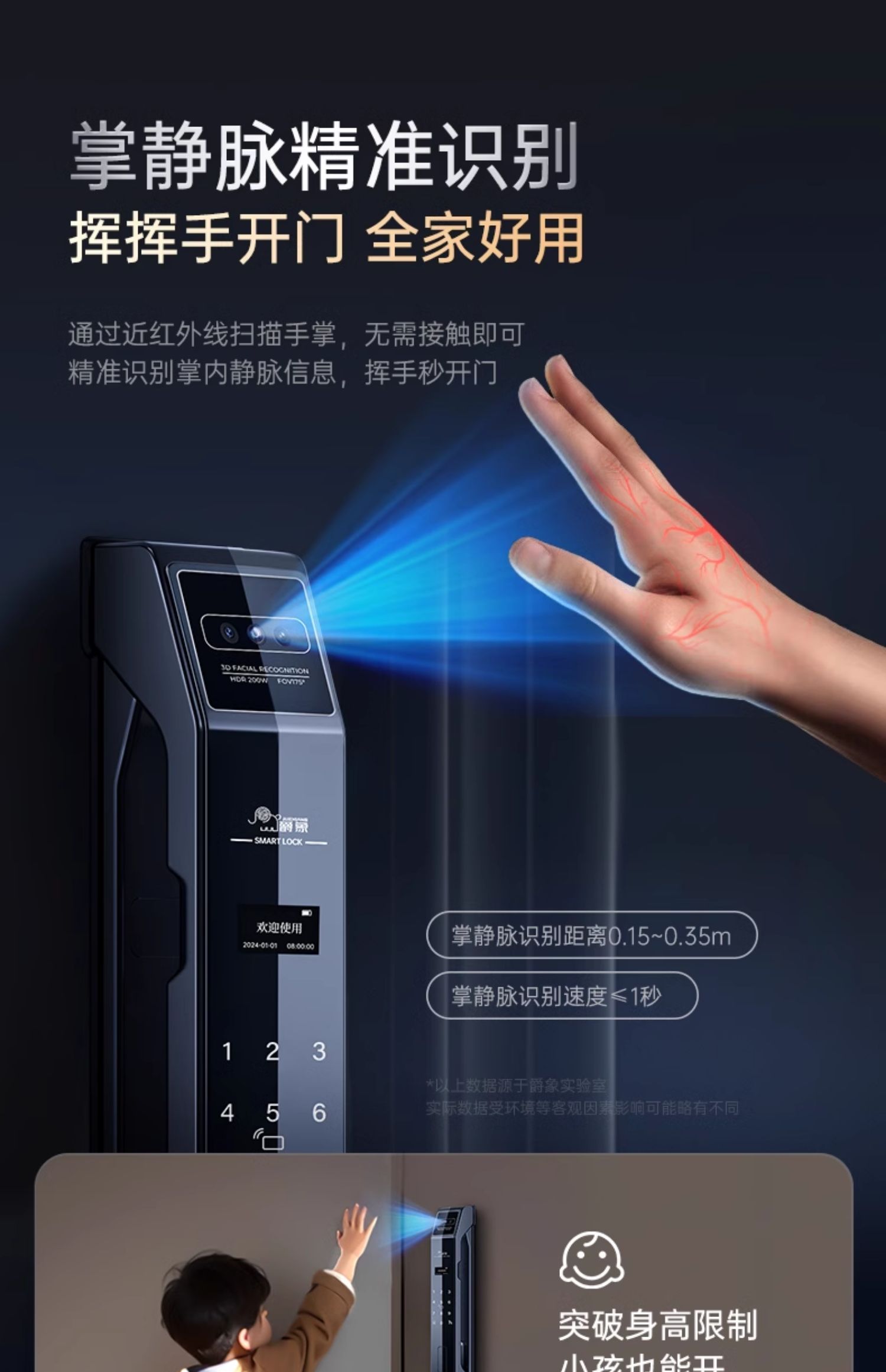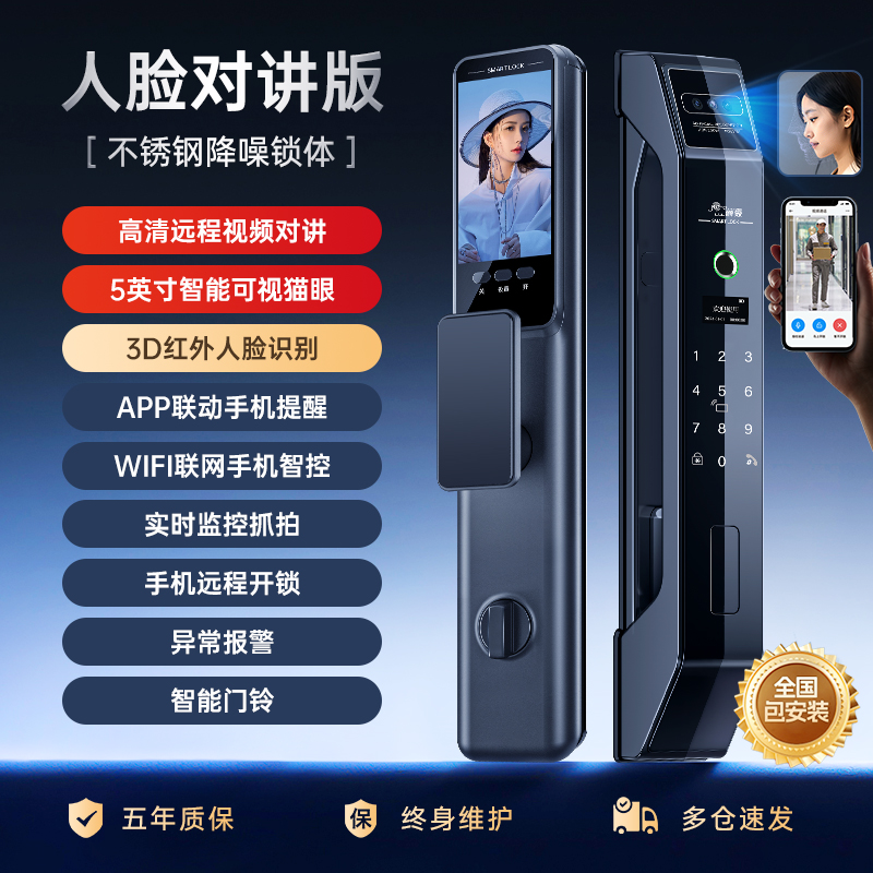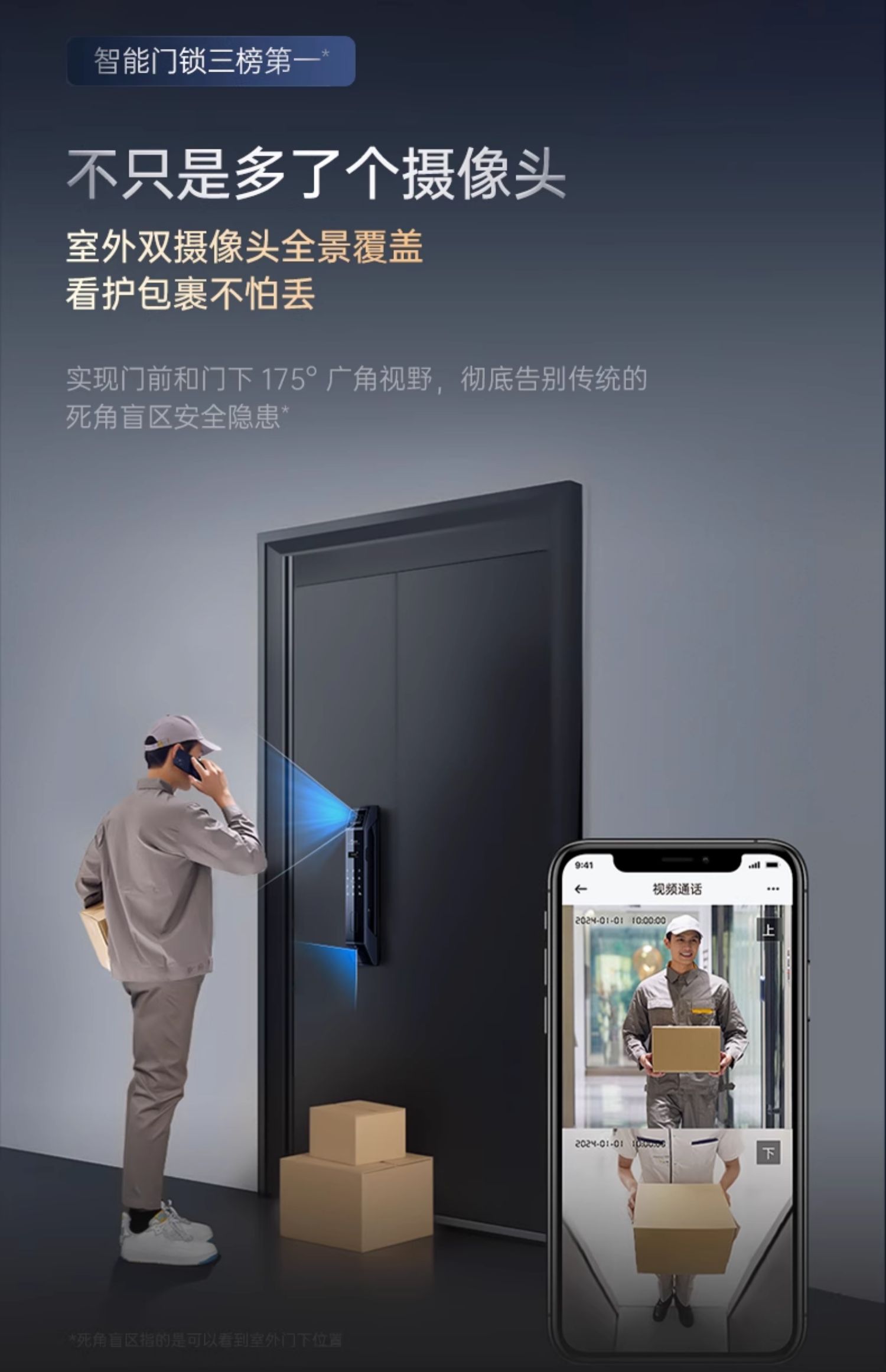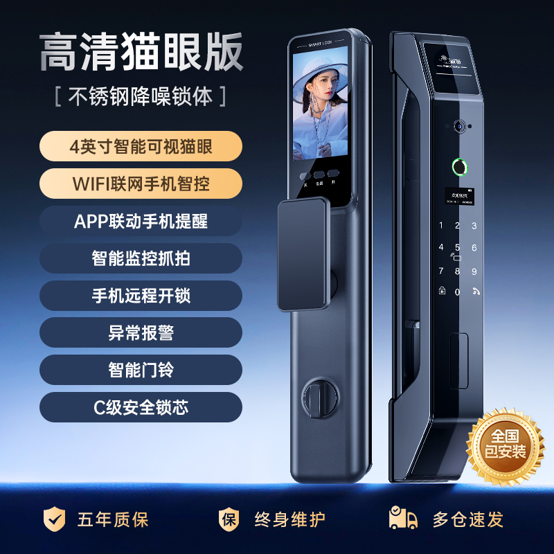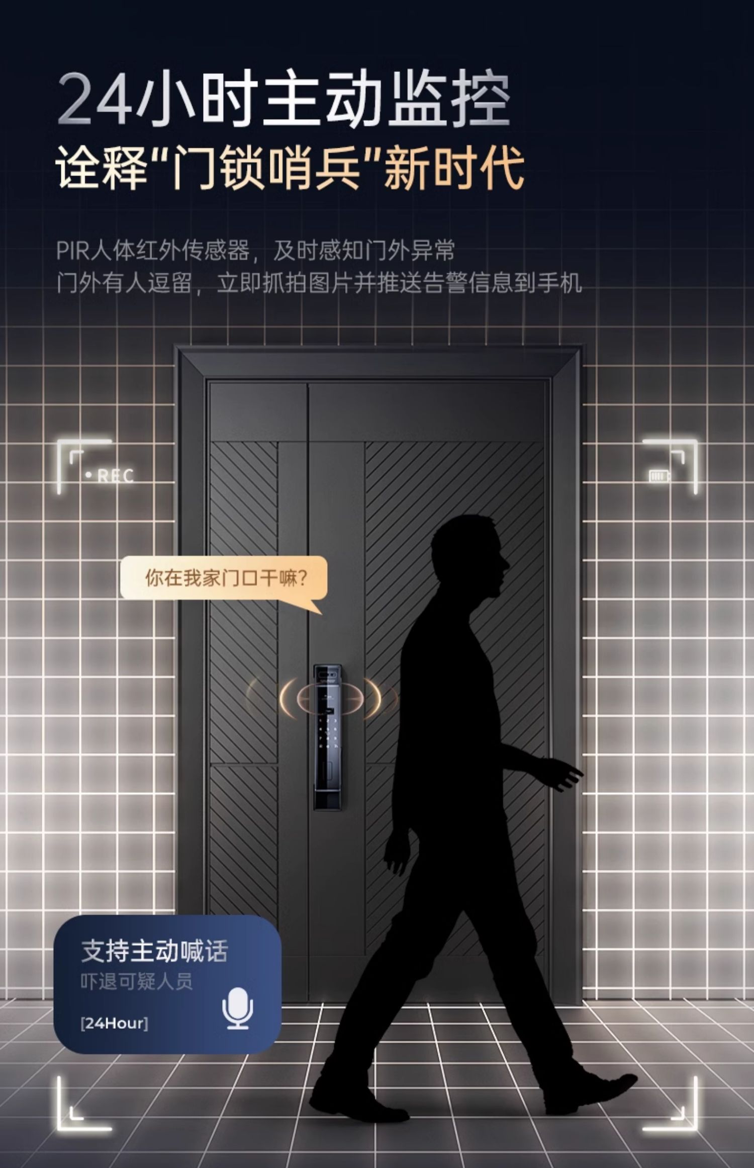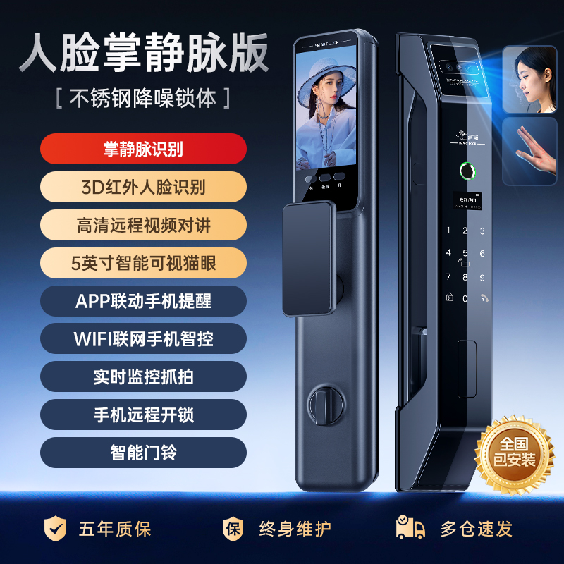 • [듀얼 렌즈 모니터링 + 3D 얼굴 인식 + 손가락/손바닥 정맥 + 비디오 인터콤 + 고화질 고양이 눈 + 휴대폰 지능형 제어]