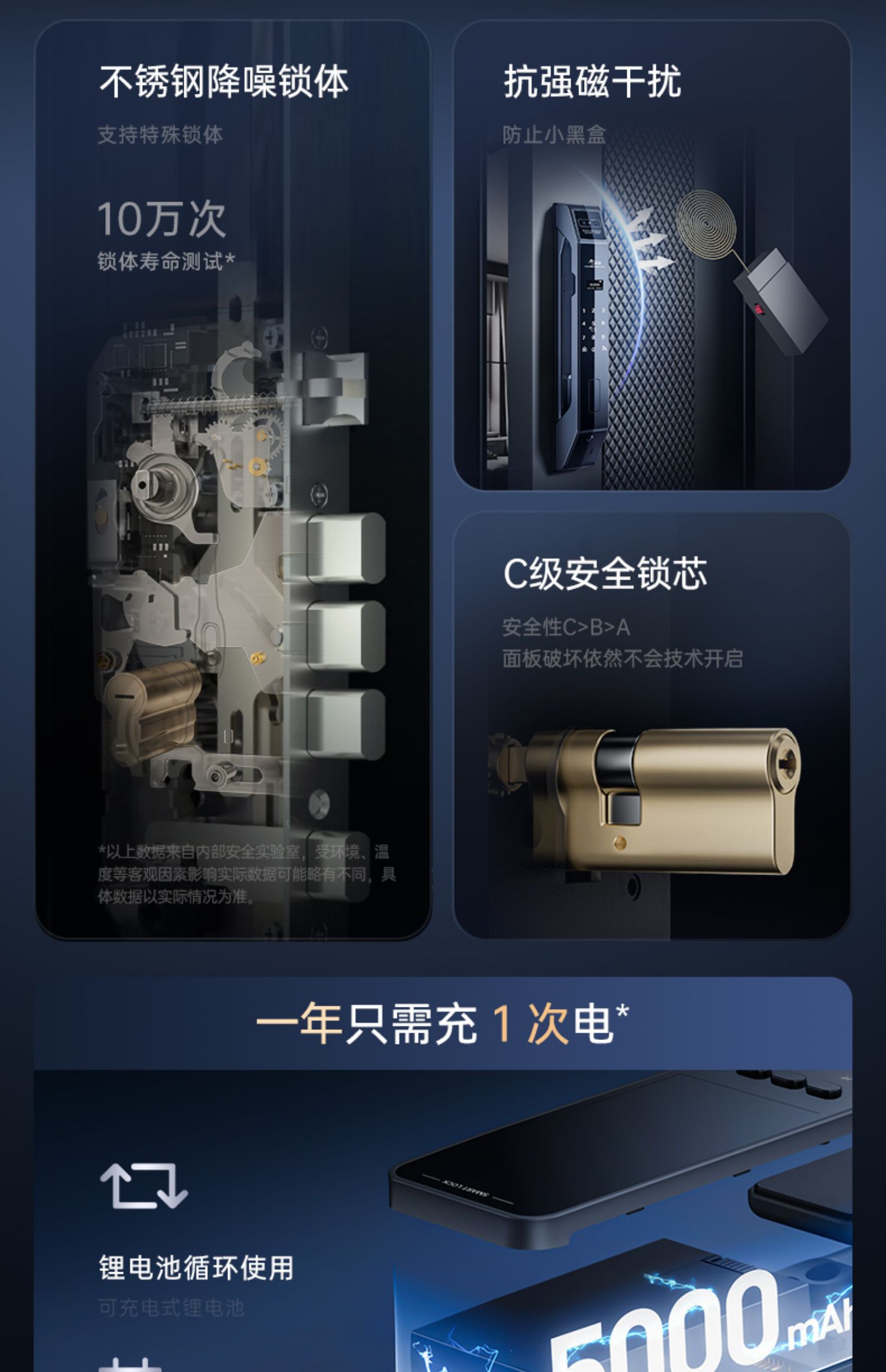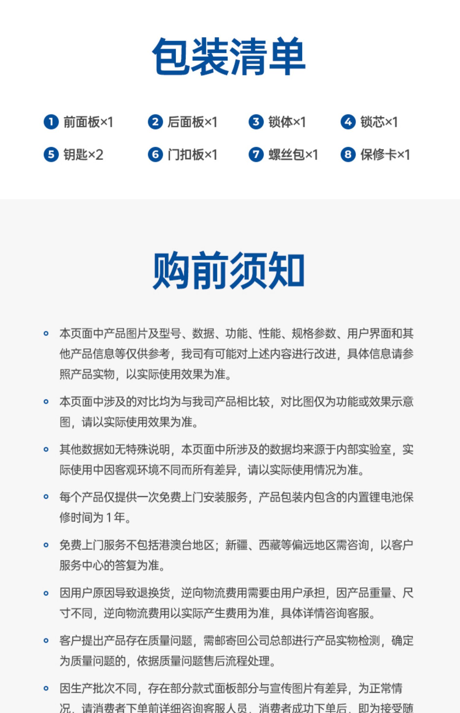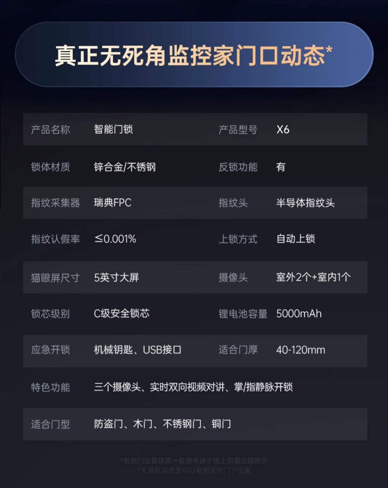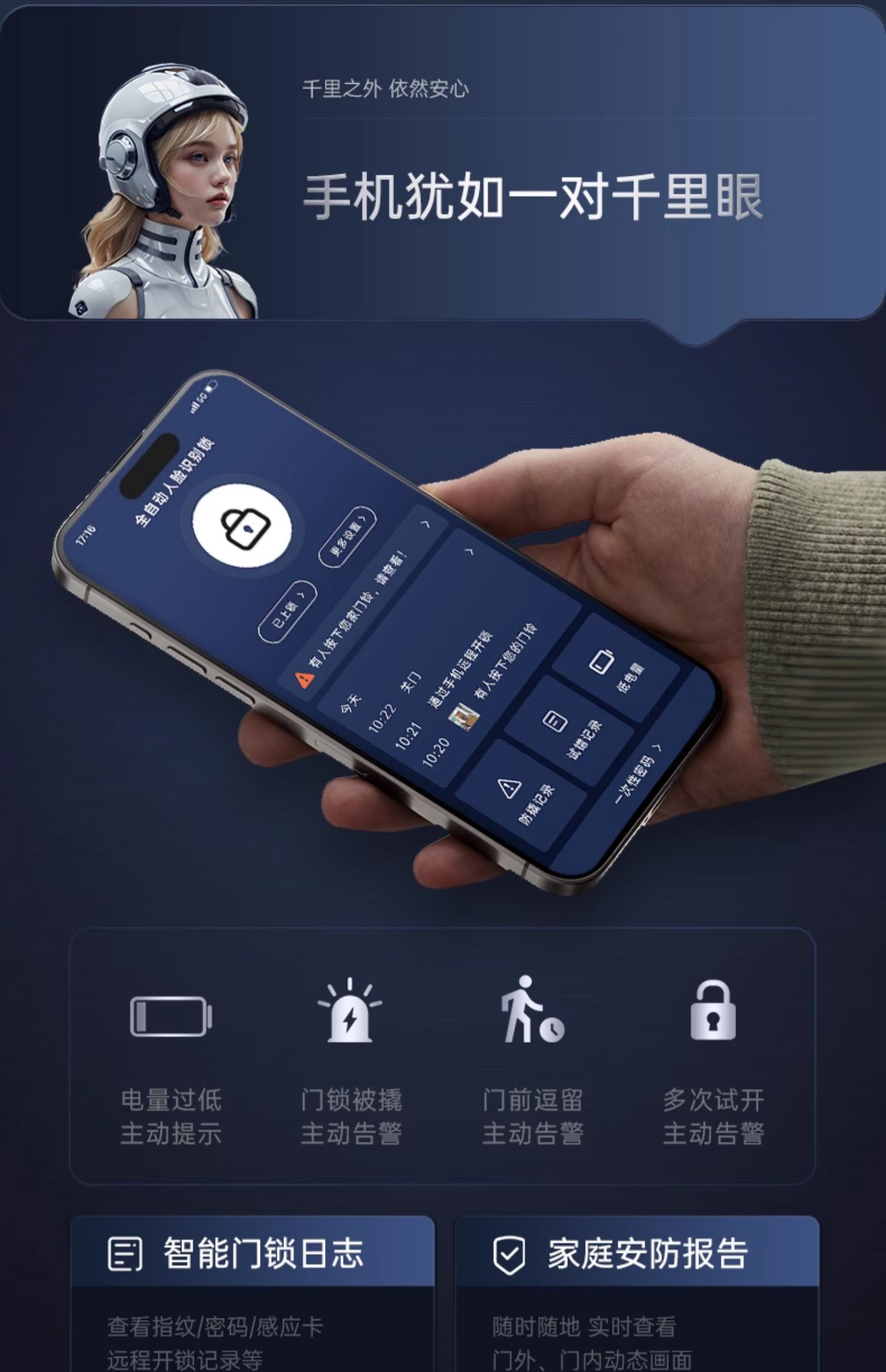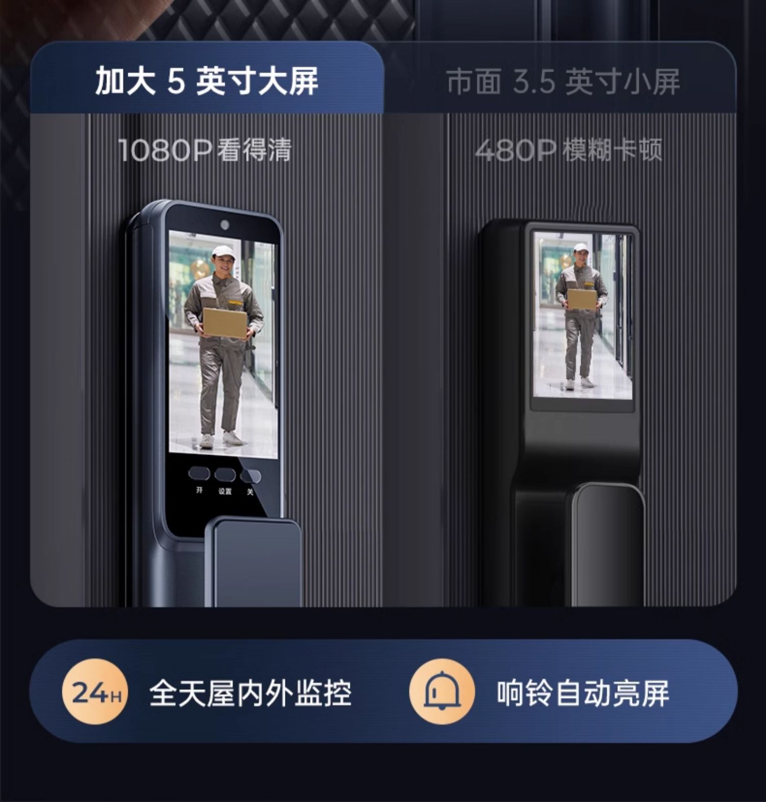 • [듀얼 렌즈 모니터링 + 3D 얼굴 인식 + 손가락/손바닥 정맥 + 비디오 인터콤 + 고화질 고양이 눈 + 휴대폰 지능형 제어]