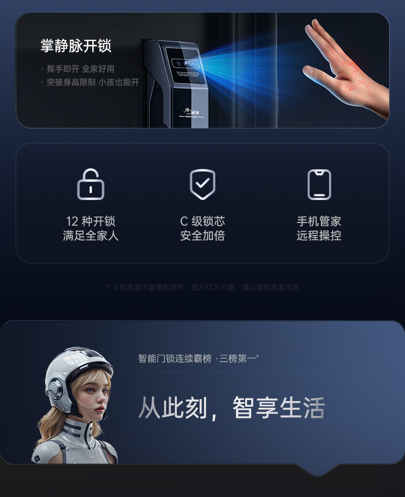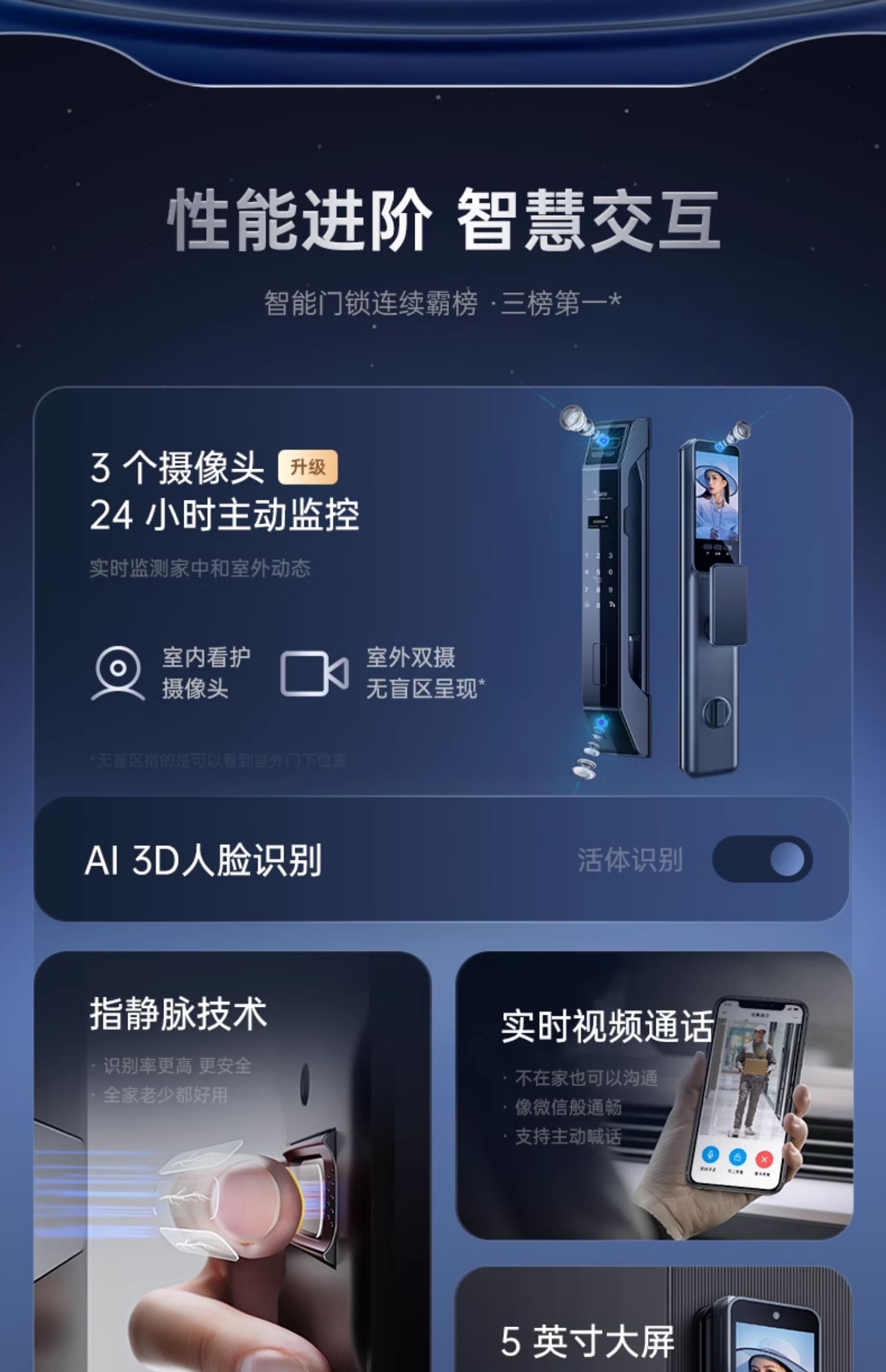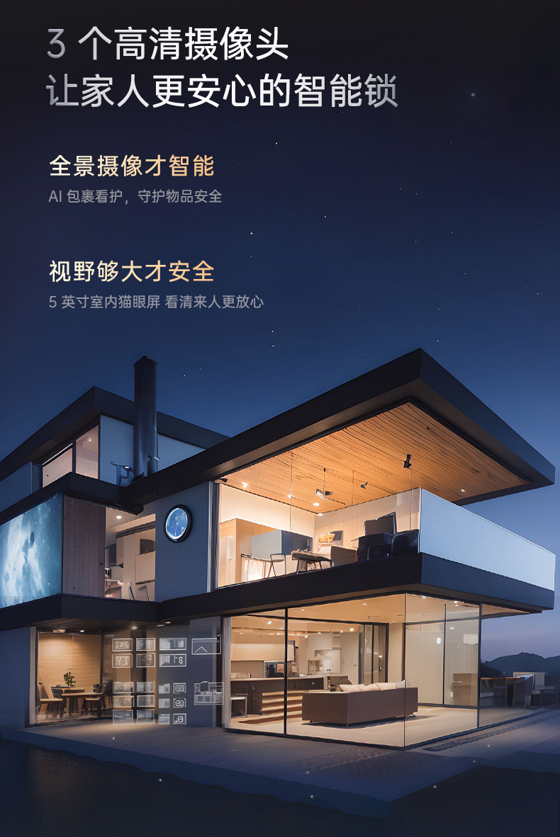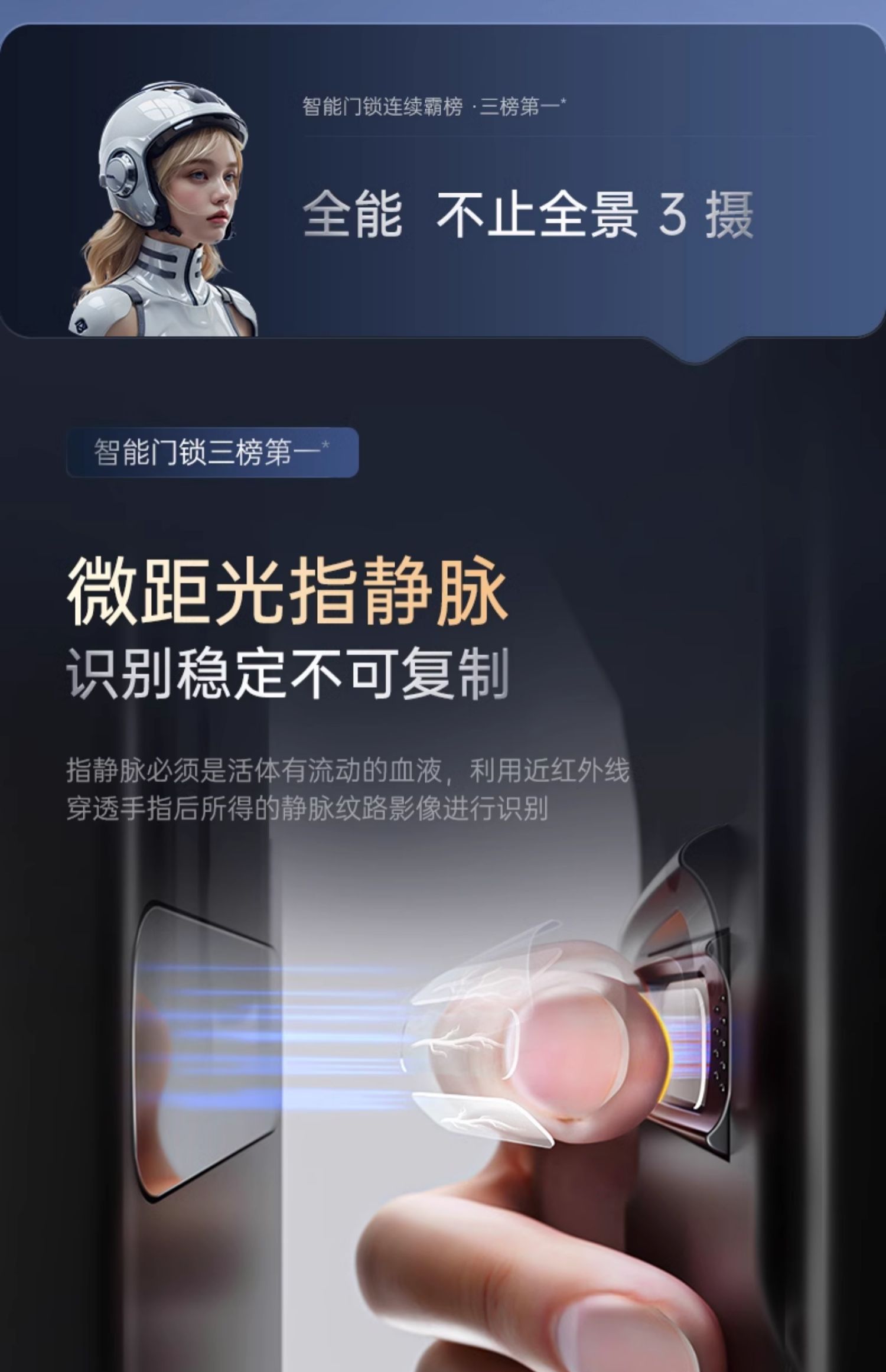• [3렌즈 모니터링 + 3D 얼굴인식 + 손가락/손바닥 정맥 + 영상인터콤 + 고화질 캣아이 + 휴대폰 지능형 제어]